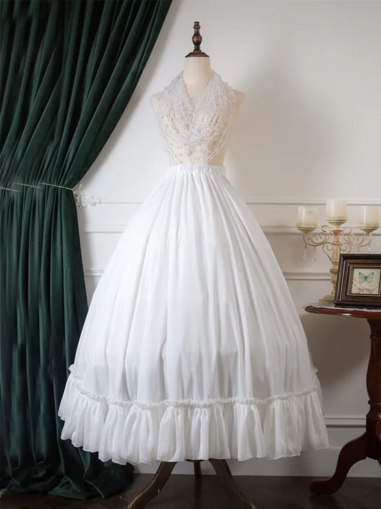 クリアランスフリーサイズ ウエスト50-100cm ホワイトシャーリングウエスト フラウンスヘムラインアンダースカート
