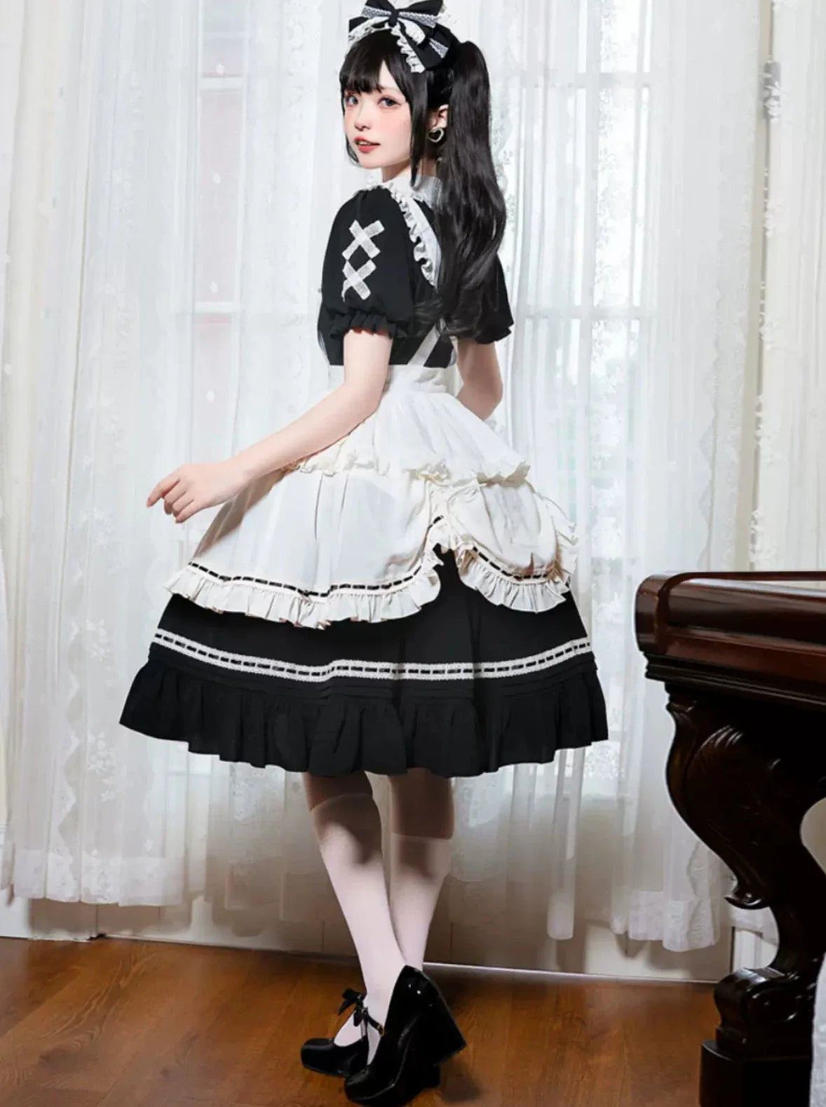 フリルワンピースロリータとキューピッドエプロンの組み合わせで、周りの視線を釘付けにしましょう!フリルのディテールが可愛らしいこの一着は、甘さをプラス。付属のエプロンは実用的でありながらキュートな雰囲気もプラス。チャーミングで愛らしいルックにぴったりです。