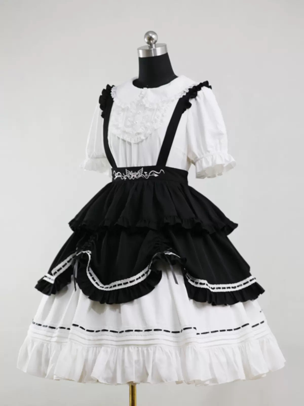 黒と白のオールドスクールロリータファッションドレス蝶結びロリータJSKセット