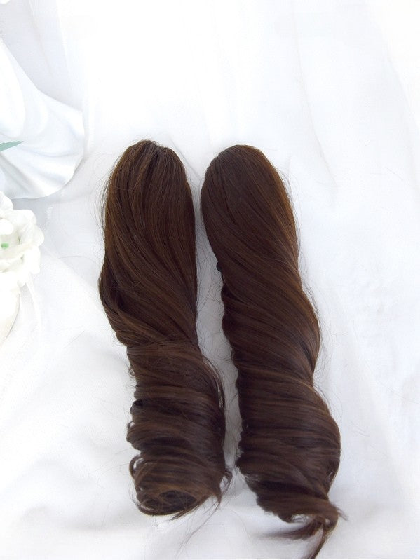 フル22cmクリップ、30cmブラウンストレートバングス、ショートポニーテールウィッグ、ダブルカーリー+ローマンクロー