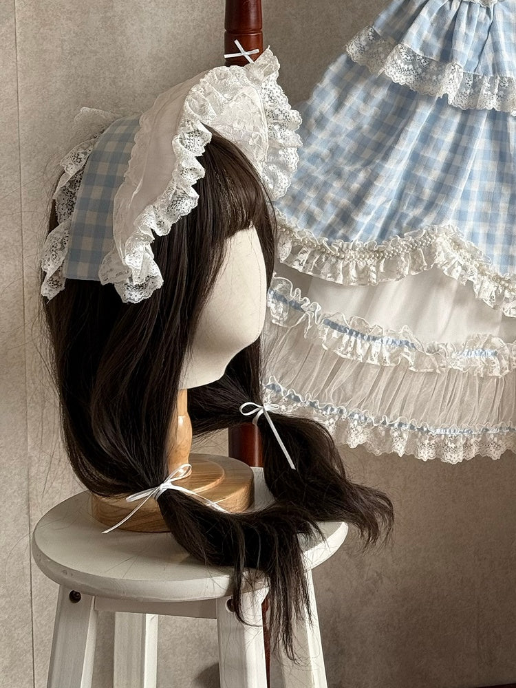 ギンガムチェックのブルーボンネットとホワイト