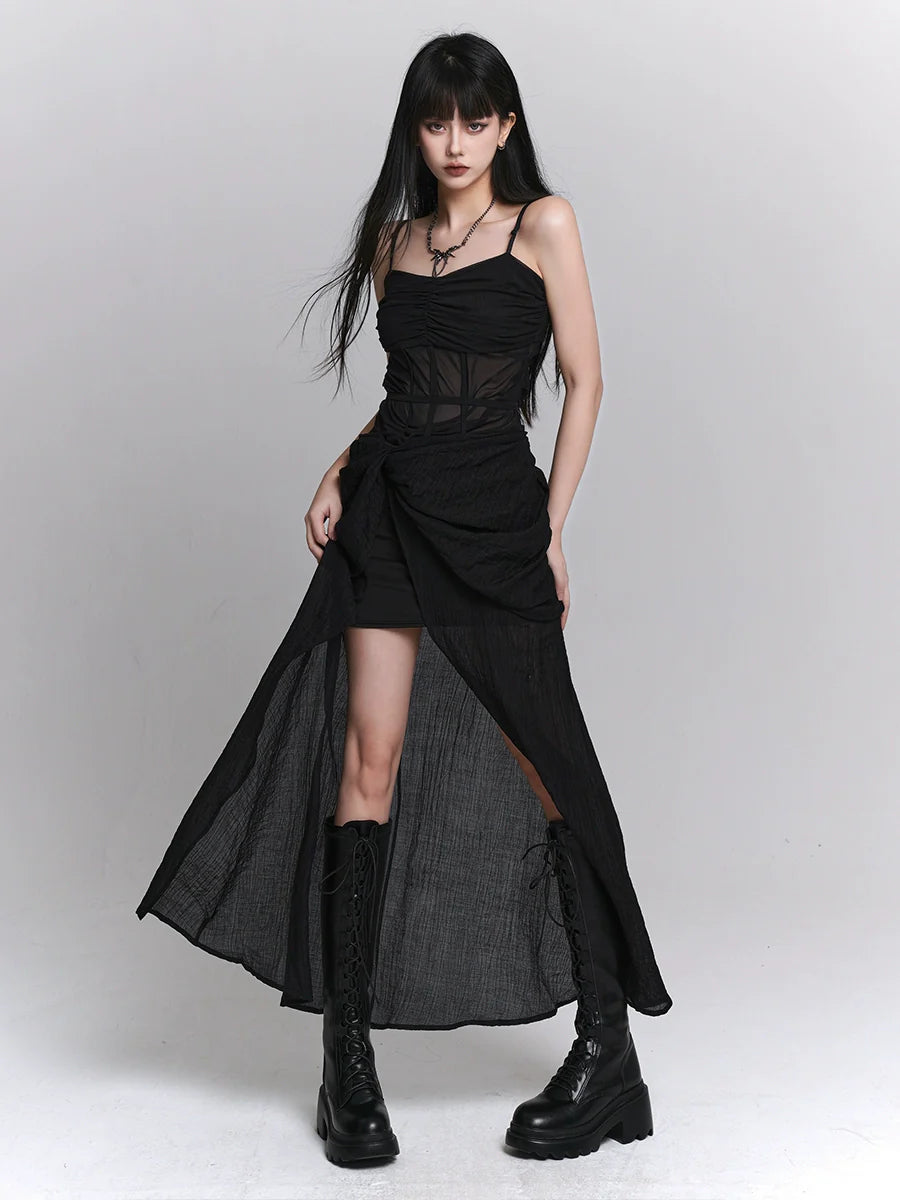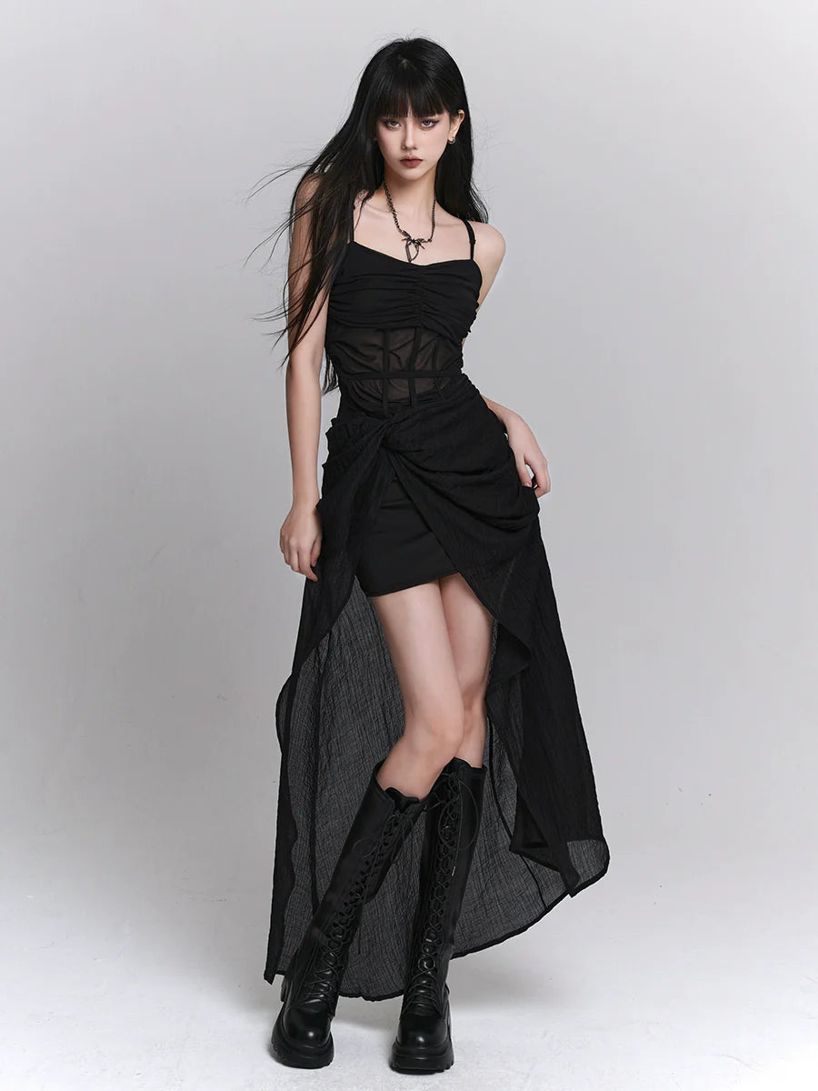 女の子のゴーストの小さなパーティーの黒いドレスの夏