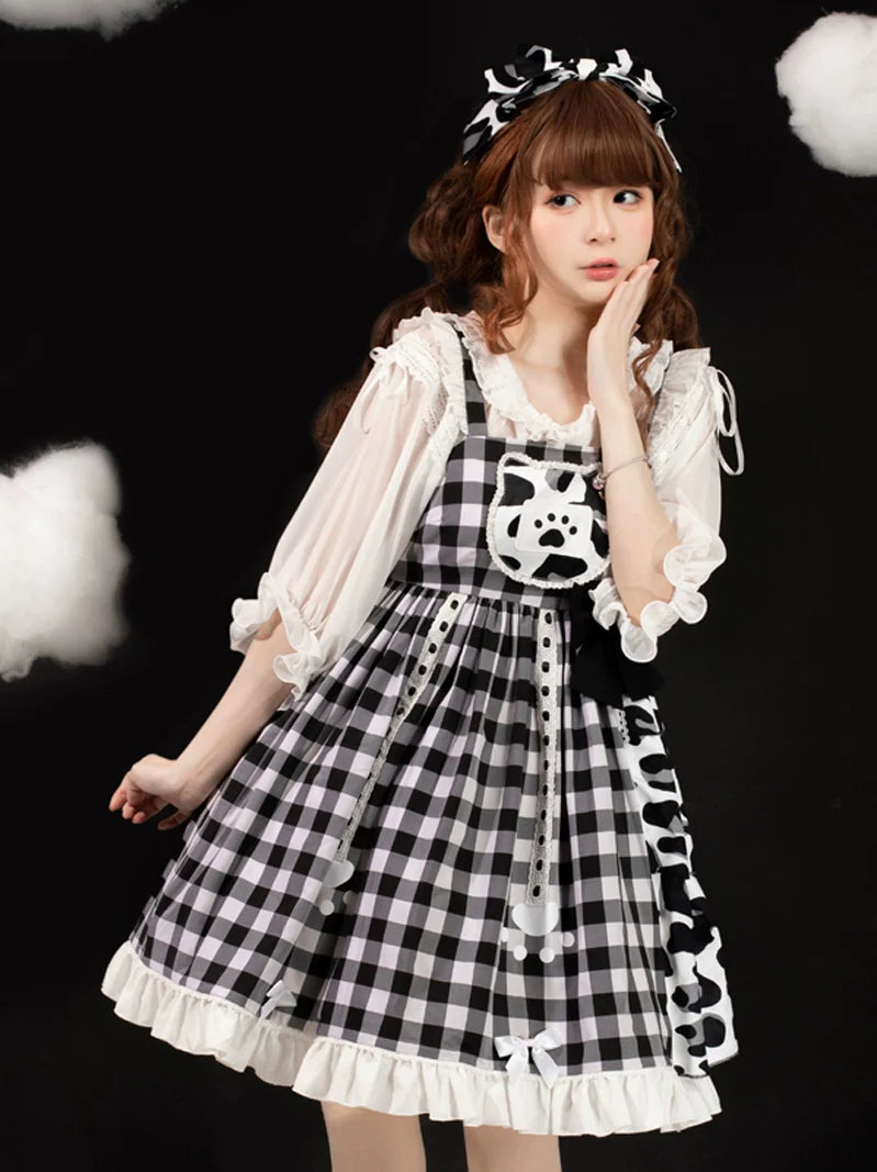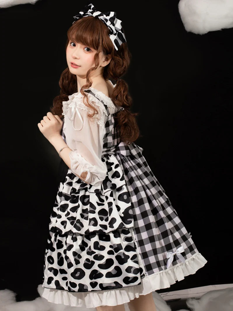 黒と白のオールドスクールロリータファッションドレス蝶結びロリータJSKセット
