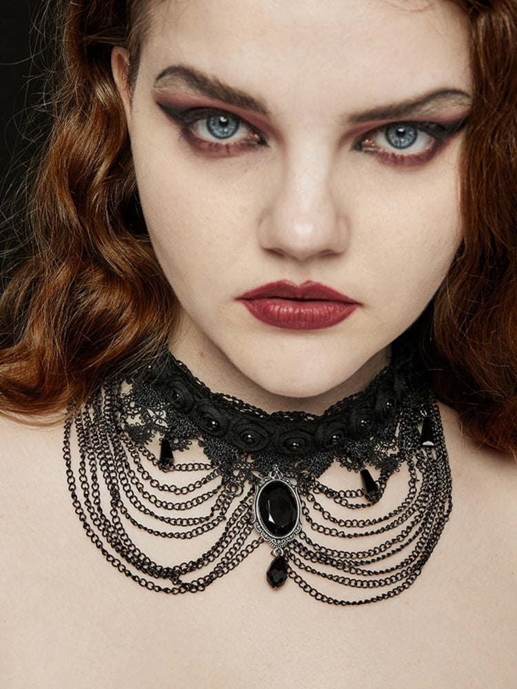 ゴスヘッドウェアのレースチョーカーで、あなたのスタイルにエッジを効かせましょう!上質なレースを使用したこのチョーカーは、どんな装いにもダークな雰囲気を添えてくれます。個性的なスタイルを貫き、人目を惹きつけたいあなたにぴったりです。