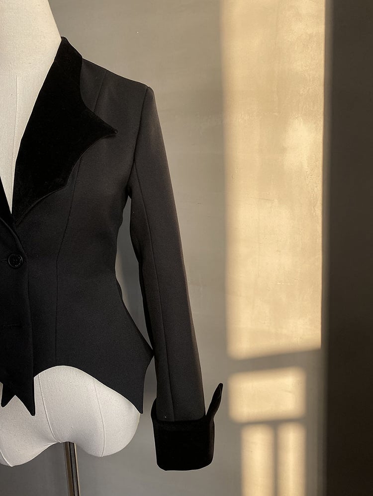 Black Gothic Lolita Blazer with Velvet Bat Collar and Cuff