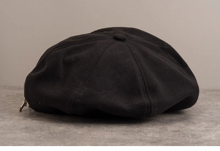 Handmade PU Buckle Black Gothic Beret with Cross Chain