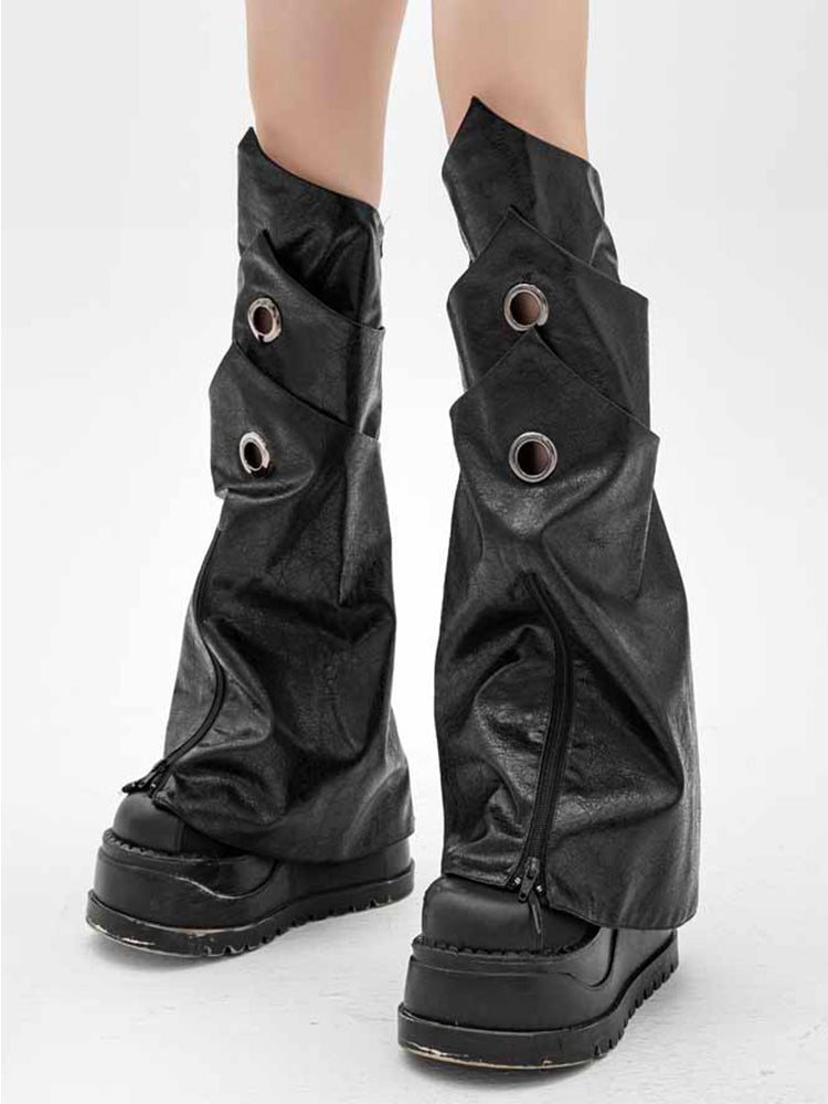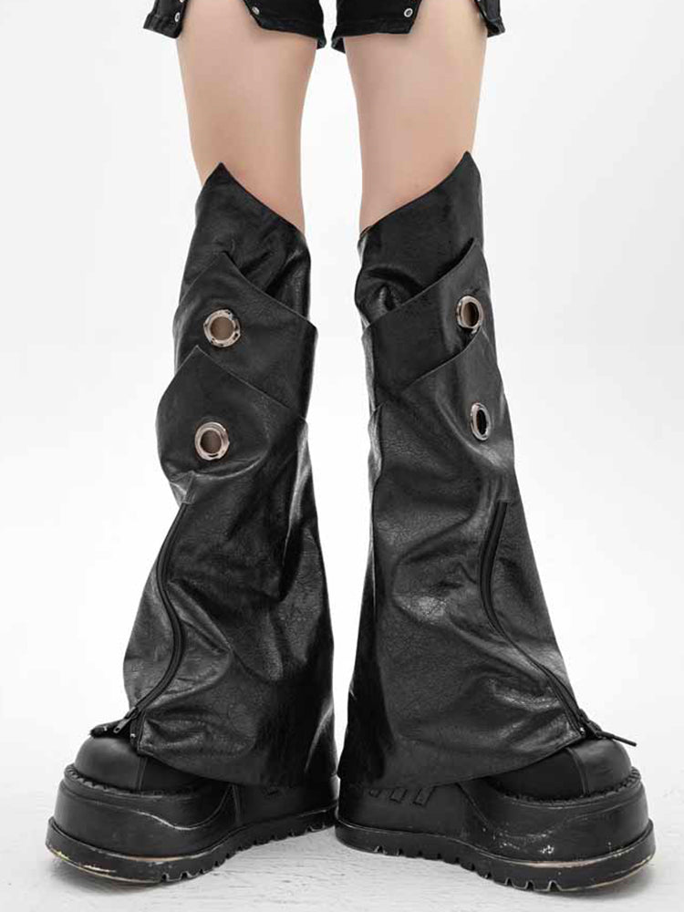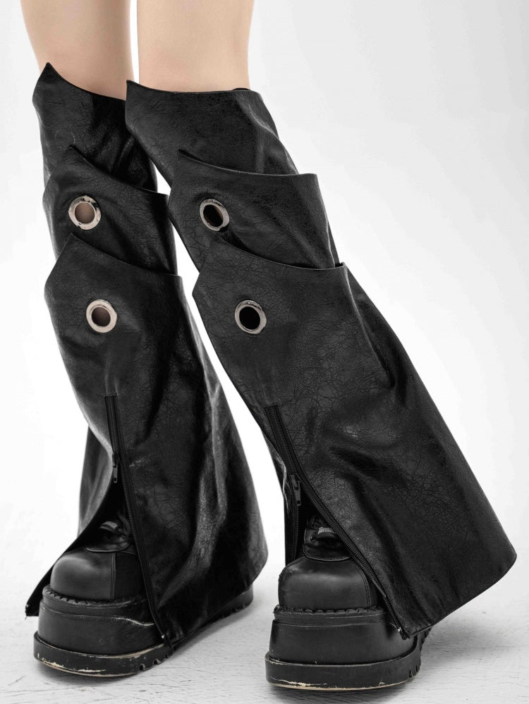 ゴシックブラックアーマーテックウェアPUジップレッグウォーマー