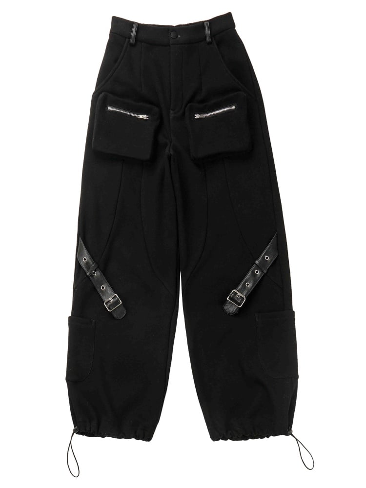 ゴシックブラックバックルカーゴパンツ(ドローストリングカフ付き)