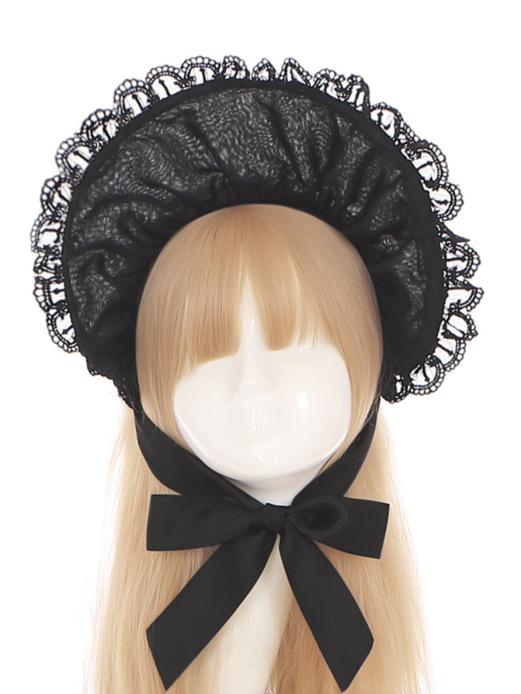 ゴシックロリータクロブラックレーストリムボンネット