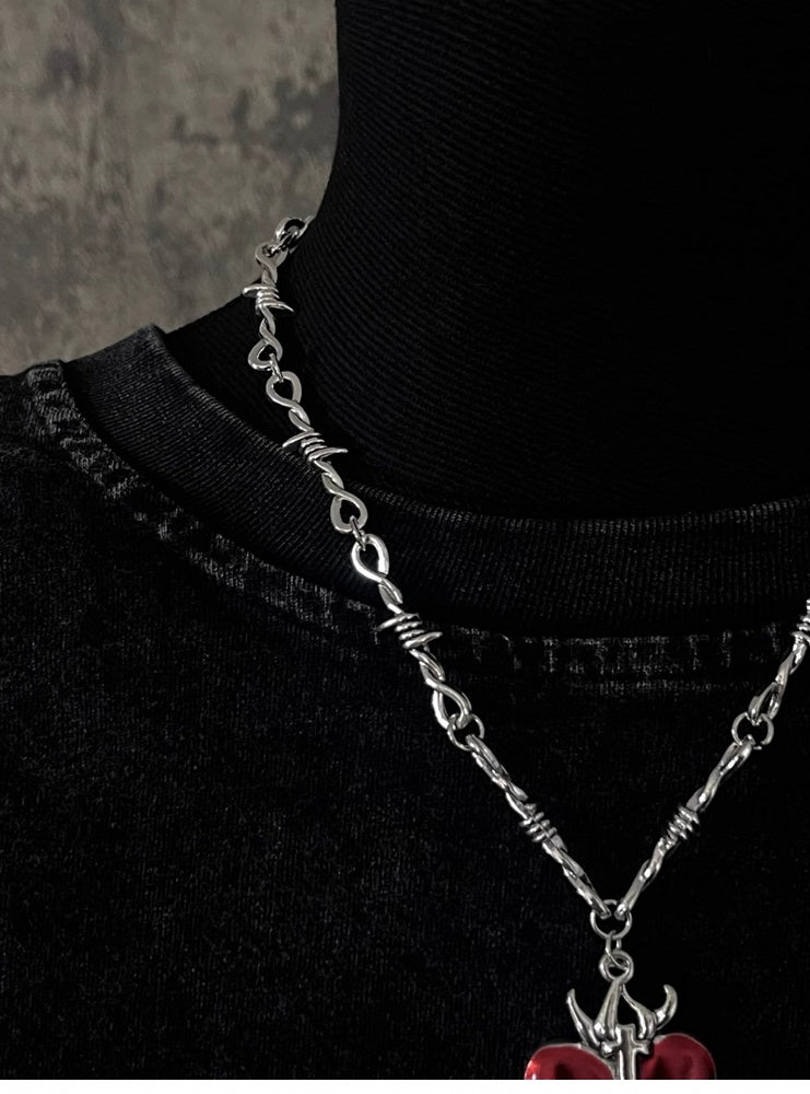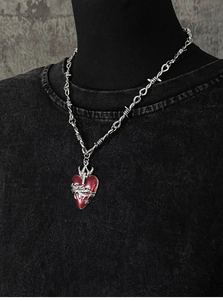 ゴシックな赤い棘があしらわれた、愛らしいハート型のペンダントネックレスで、スタイルをワンランクアップさせましょう。精巧なデザインと大胆な色合いが、どんな装いにもエッジの効いたアクセントを添えます。キュートな魅力と魅力をプラスするのに最適です。