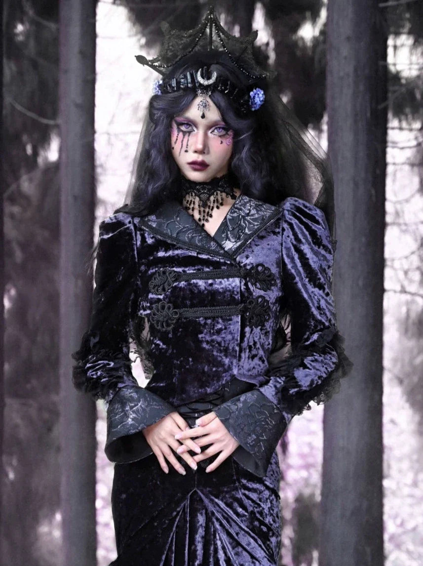 ゴシックなベルベットカラースタイルのジャケットは、スリムなスタンドデザインでヨーロピアンエレガンスを演出します。贅沢なベルベット素材が洗練された雰囲気を醸し出し、暖かさもキープ。キュートでありながらシックなステートメントピースをお探しの方にぴったりです。