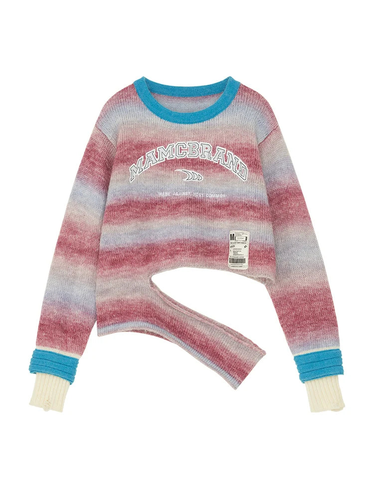 グラデーションオリジナルセーター レディース ロゴストライプレタークロップドセーター
