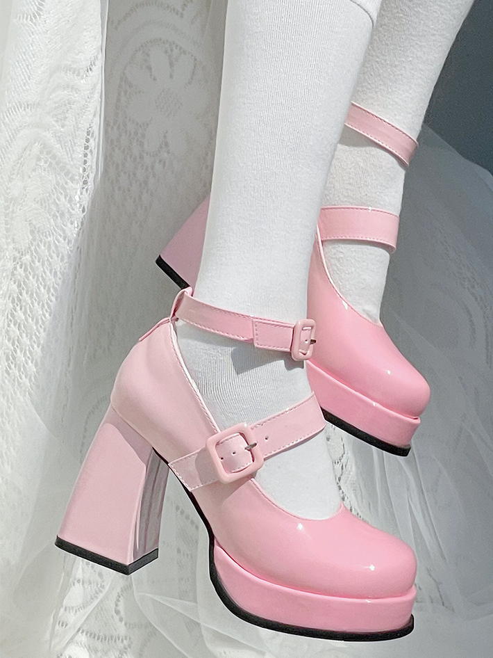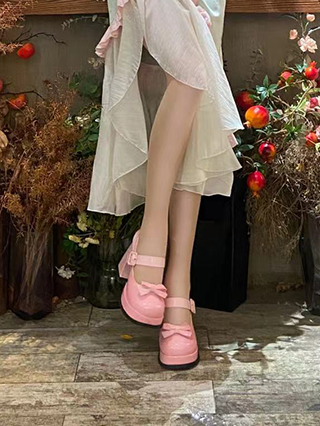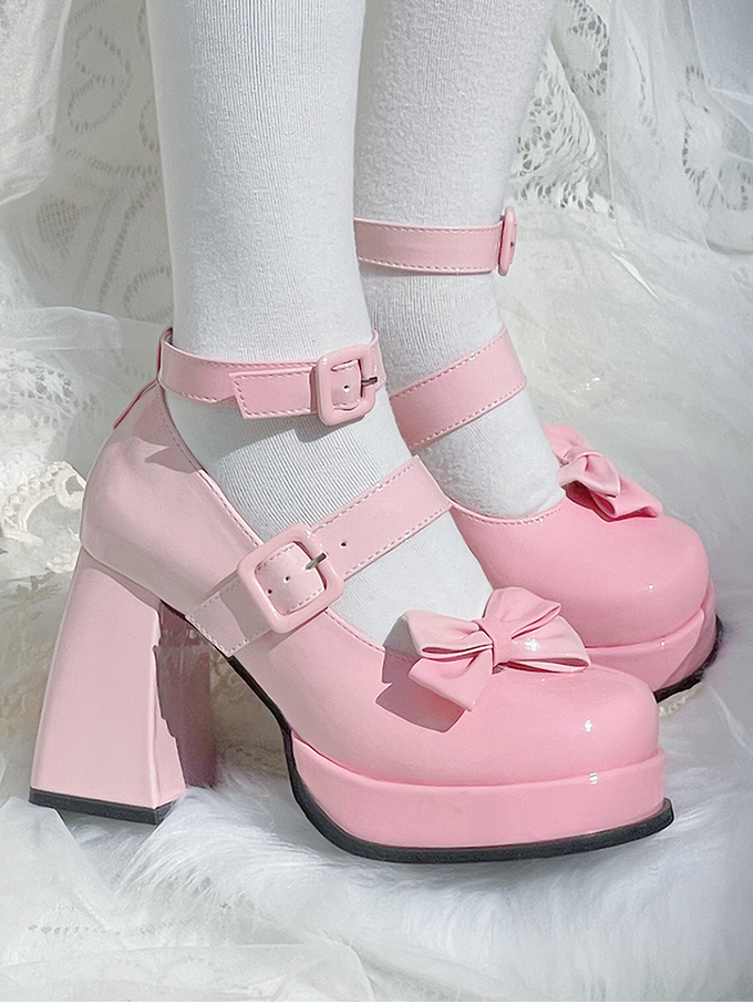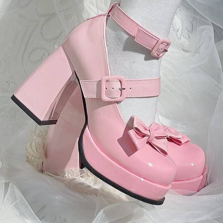 グラデーションピンクの取り外し可能な蝶結びプラットフォームハイブロックヒールロリータシューズは、可愛らしさだけでなく実用性も兼ね備えています。取り外し可能な蝶結びで様々なスタイルに合わせやすく、プラットフォームとハイブロックヒールが高さと履き心地を両立しています。