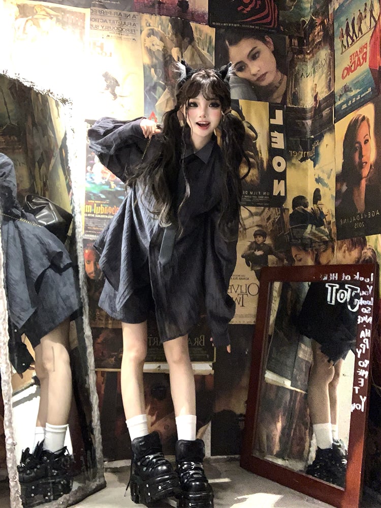 Gray Button with Collar Placket Shirt Tencel Casual Polo