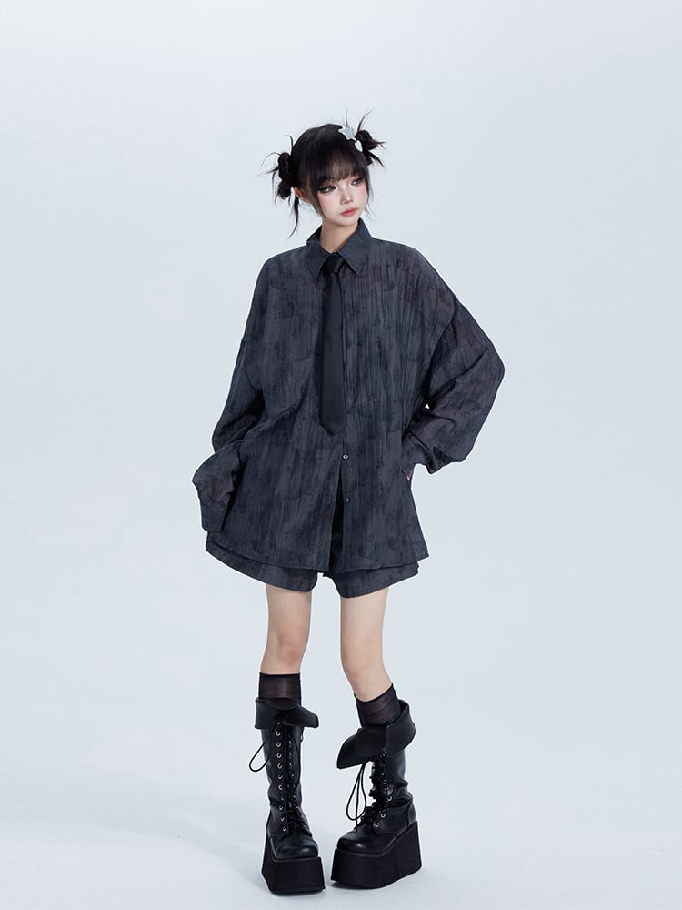 Gray Casual Tencel Shirt with Polo Collar & Button Placket