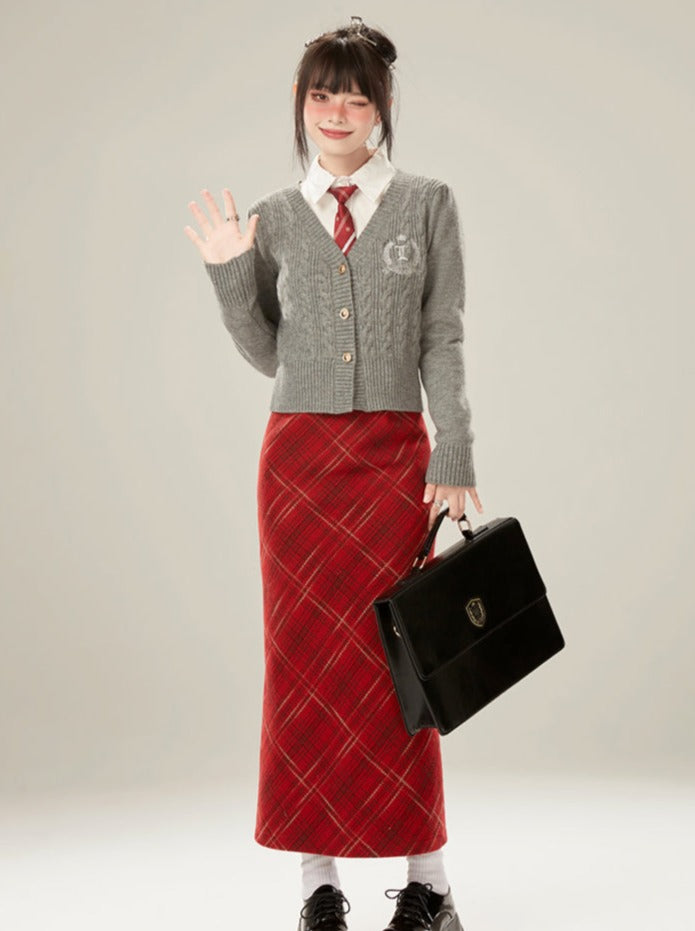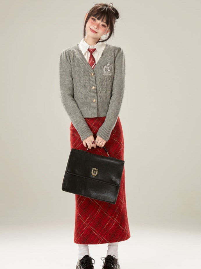 グレーのカーディガン カレッジスタイル スリムセーター
