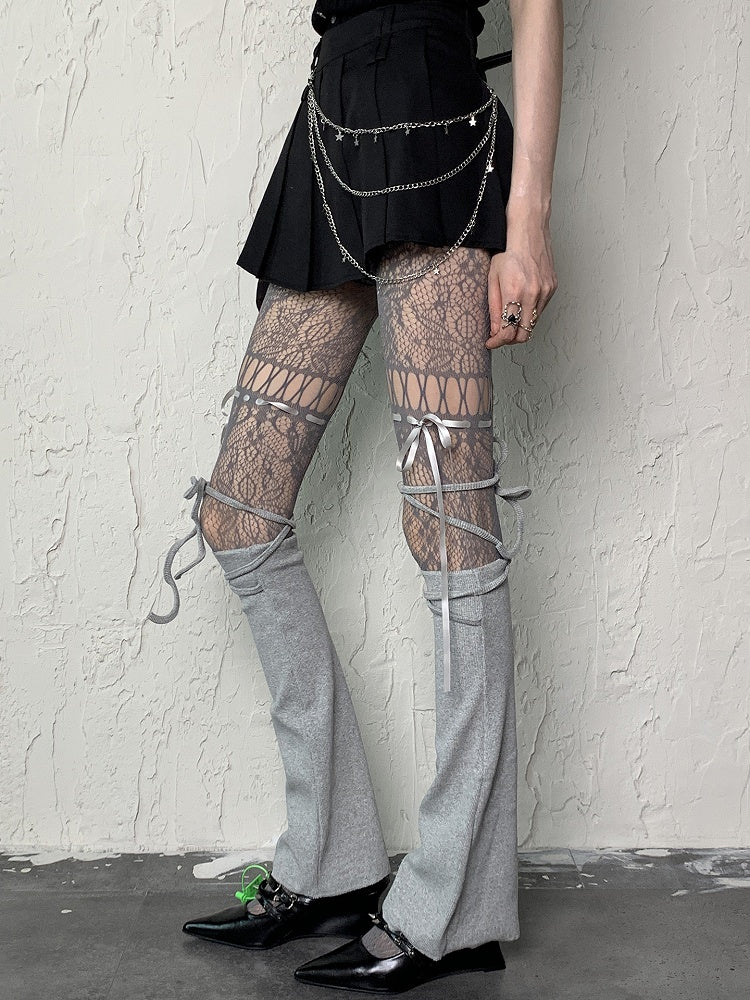 グレー Y2K セルフタイストラップ レッグスリーブ