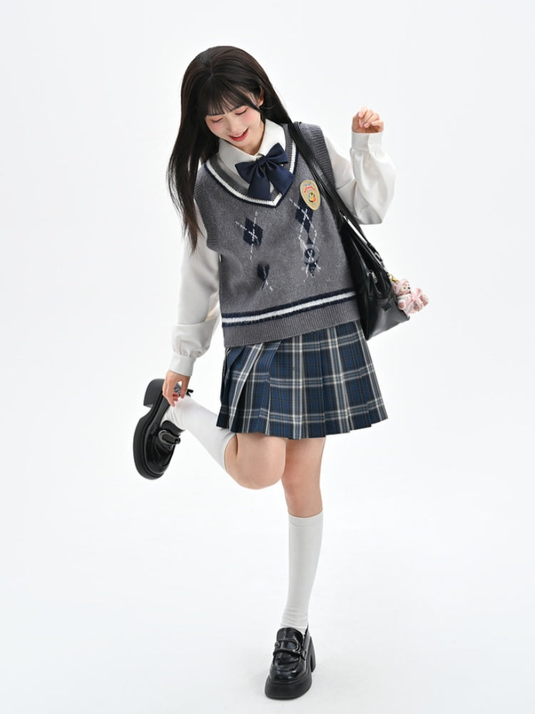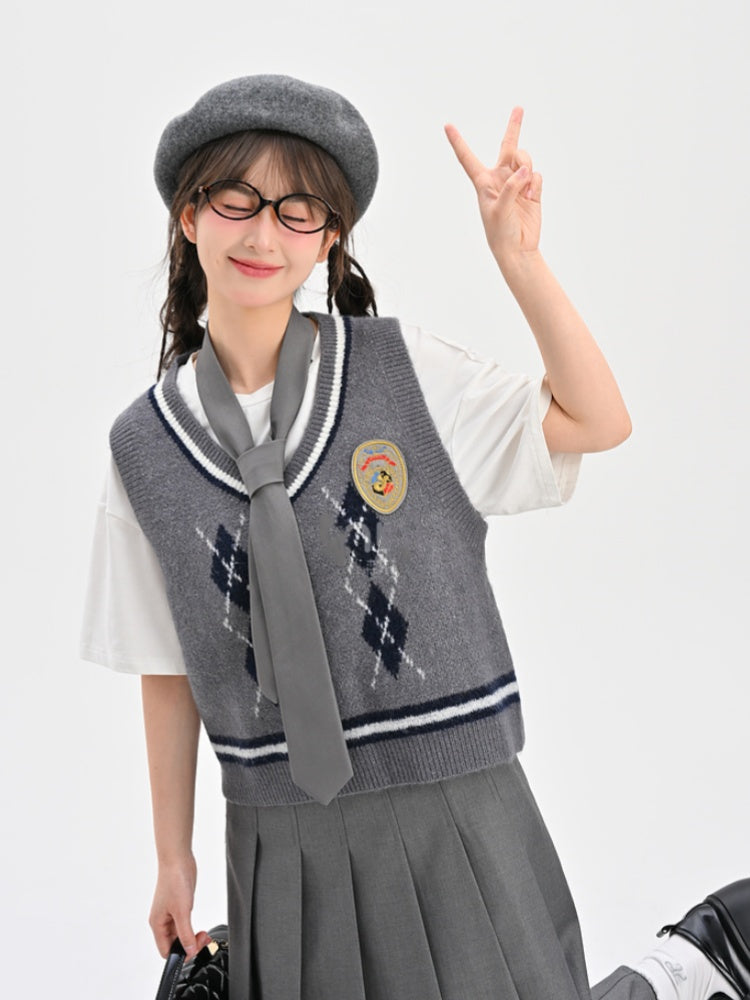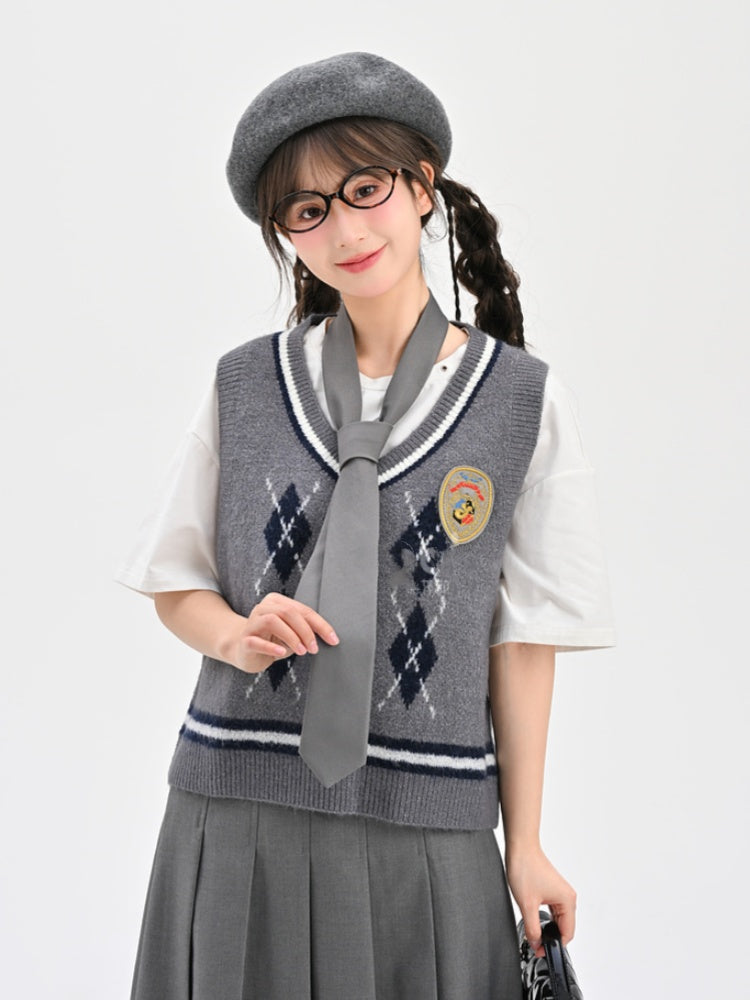 グレーのVネックダイヤモンドプレッピーニットベスト