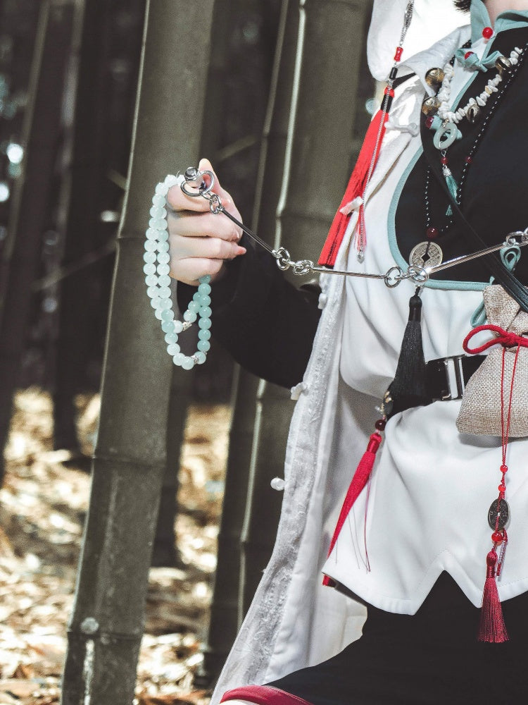 青と白のオールドスクールロリータファッションドレス 蝶結びディテール JSK セット