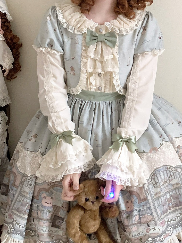 青と白のオールドスクールロリータファッションドレス 蝶結びディテール JSK セット
