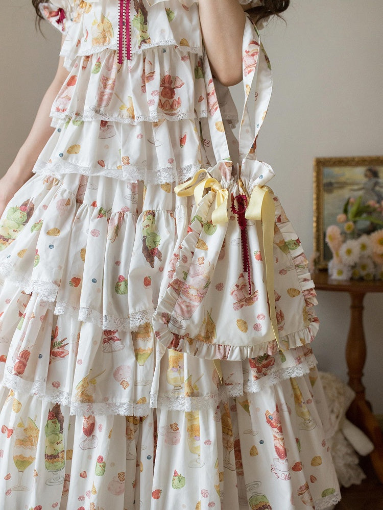 青と白のオールドスクールロリータファッションドレス 蝶結びディテール JSK セット