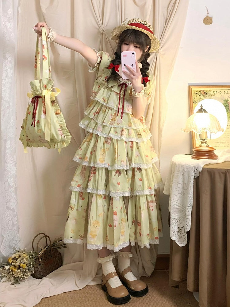 黒と白のオールドスクールロリータファッションドレス蝶結びロリータJSKセット