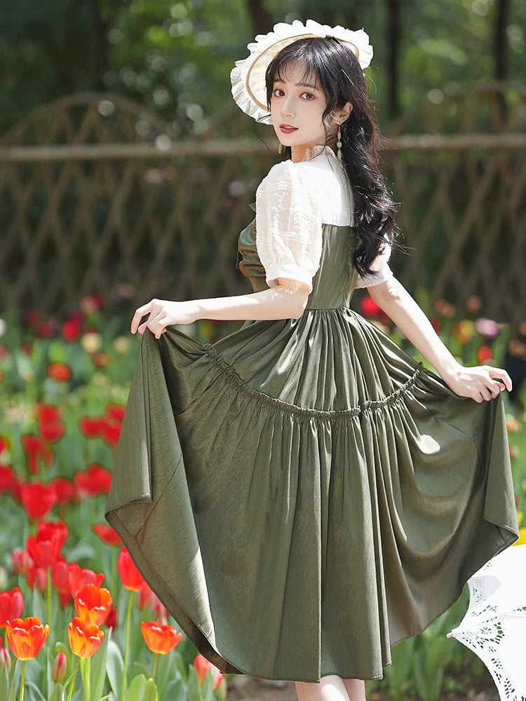 グリーンダークレトロドレスで、レトロな美しさを演出しましょう。個性的なグリーンカラーと時代を超越したレトロなデザインが特徴のこのドレスは、存在感を放ちます。上質な素材と快適な着心地で、一日中自信とスタイリッシュさを演出できます。