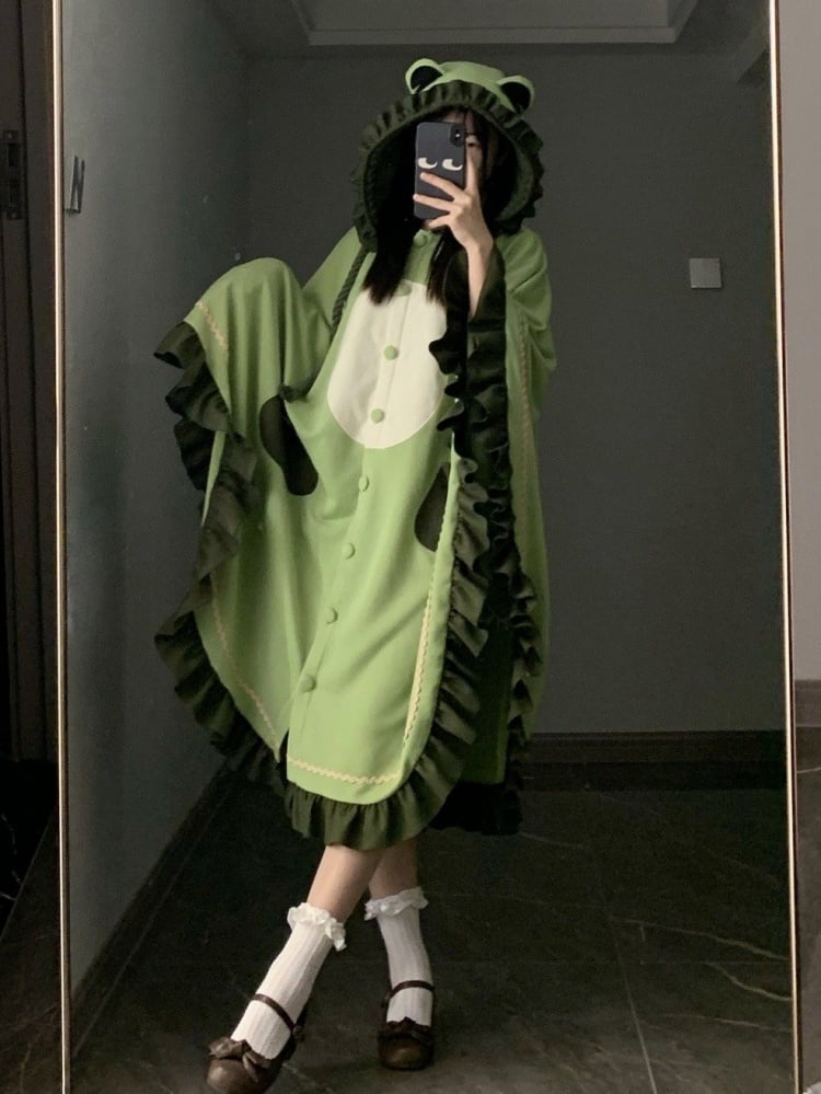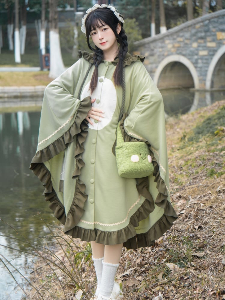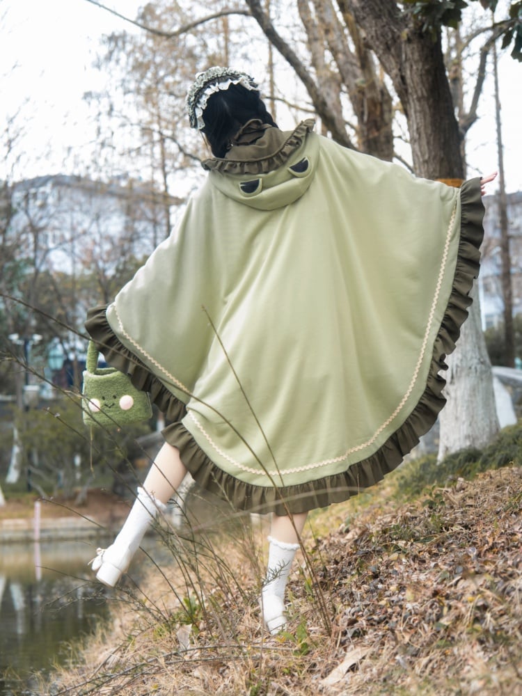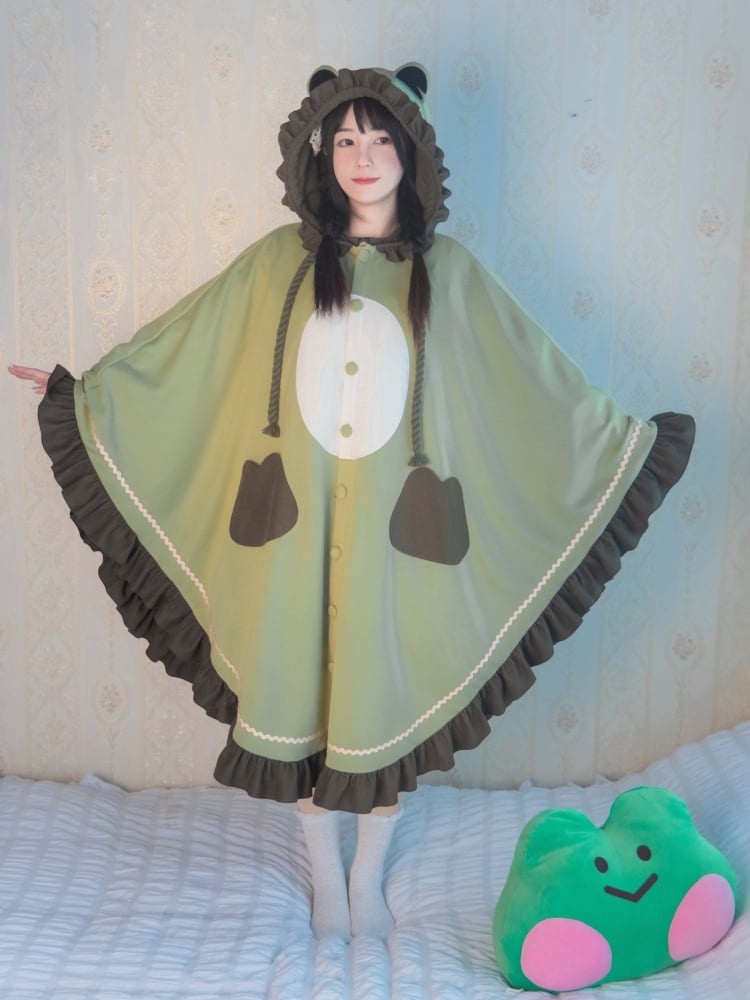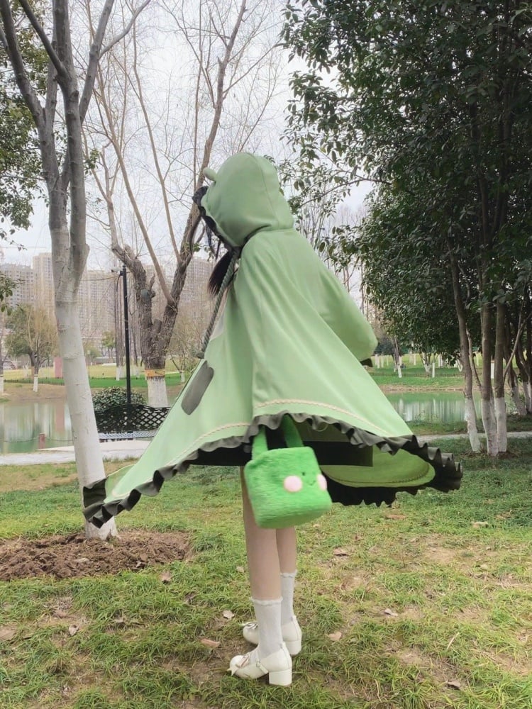 グリーンのフリルトリムのフロギーマントで、お子様のワードローブにキュートなアクセントを添えましょう。遊び心のあるグリーンのフリルトリムと愛らしいカエルのデザインが特徴のこのマントは、どんなファッショニスタのお子様にもぴったりです。この可愛らしいアイテムで、お子様を暖かく、そしてスタイリッシュに演出しましょう。