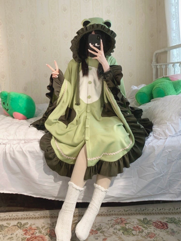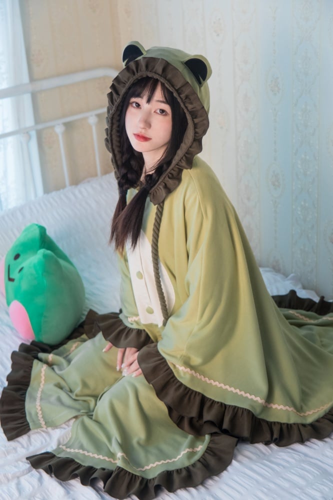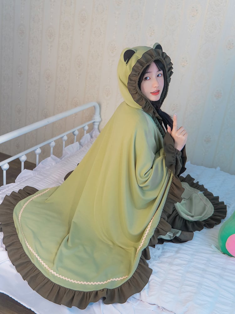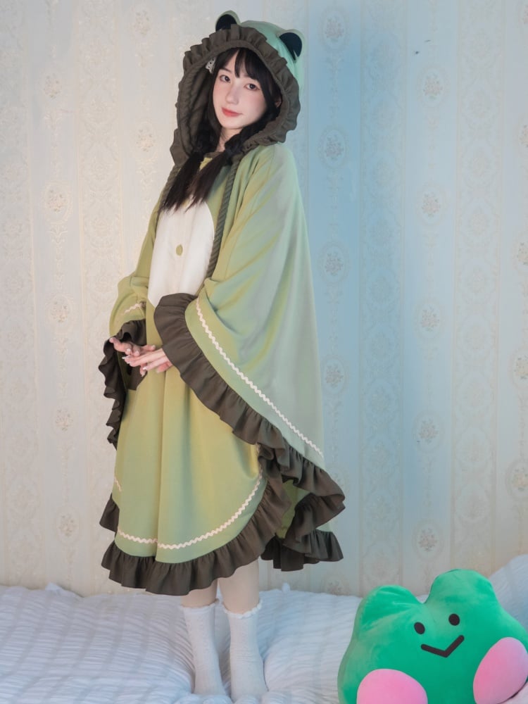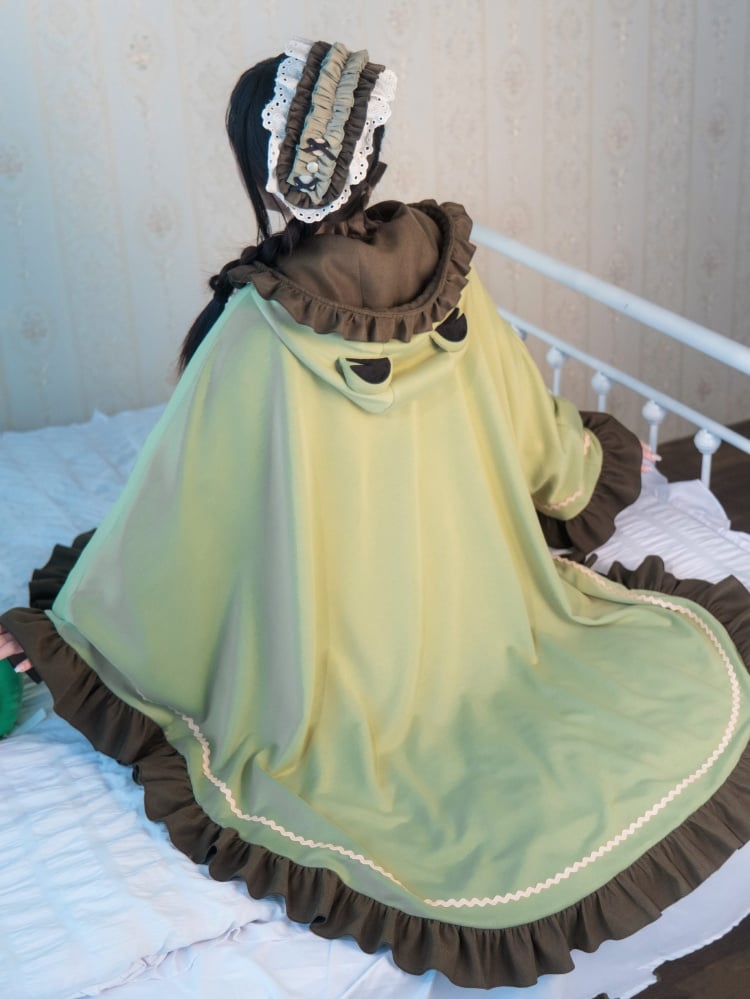 グリーンのフリルトリムのフロギーマントで、お子様のワードローブにキュートなアクセントを添えましょう。遊び心のあるグリーンのフリルトリムと愛らしいカエルのデザインが特徴のこのマントは、どんなファッショニスタのお子様にもぴったりです。この可愛らしいアイテムで、お子様を暖かく、そしてスタイリッシュに演出しましょう。