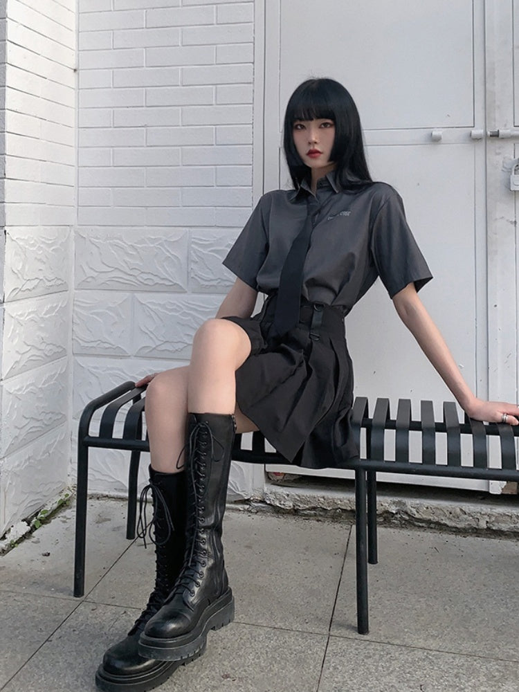 グレーのプレッピーJK制服シャツ(ネクタイ付き)