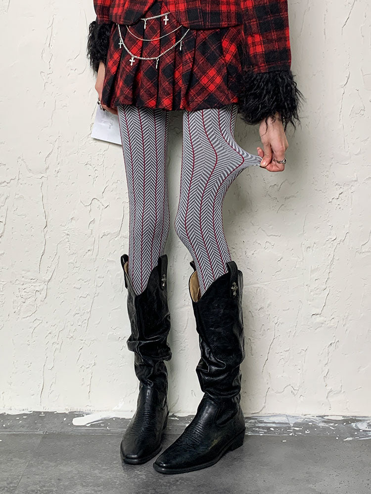 グレーのY2K冬用タイツ