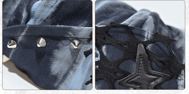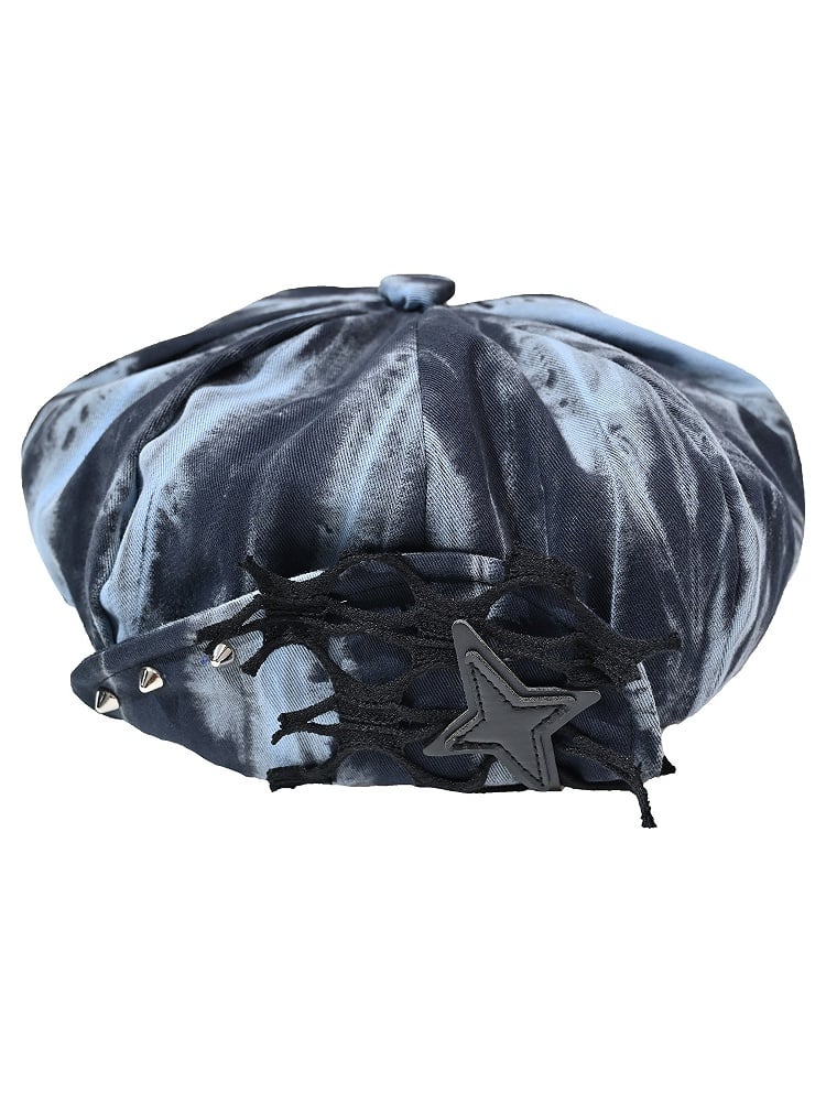 グランジパンクロックスタースタッドブルー&ブラックタイダイベレー帽