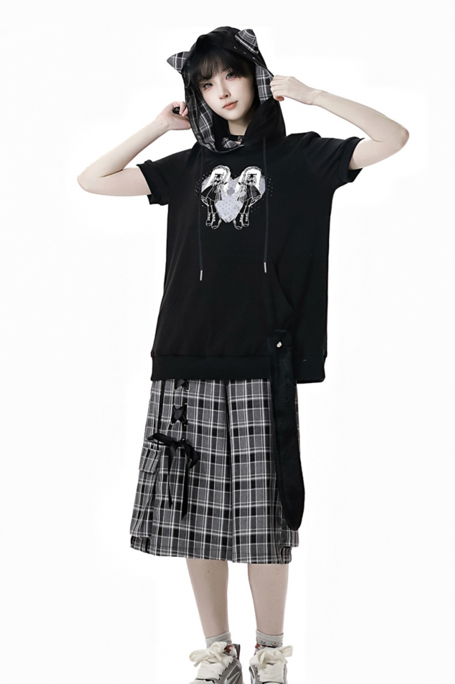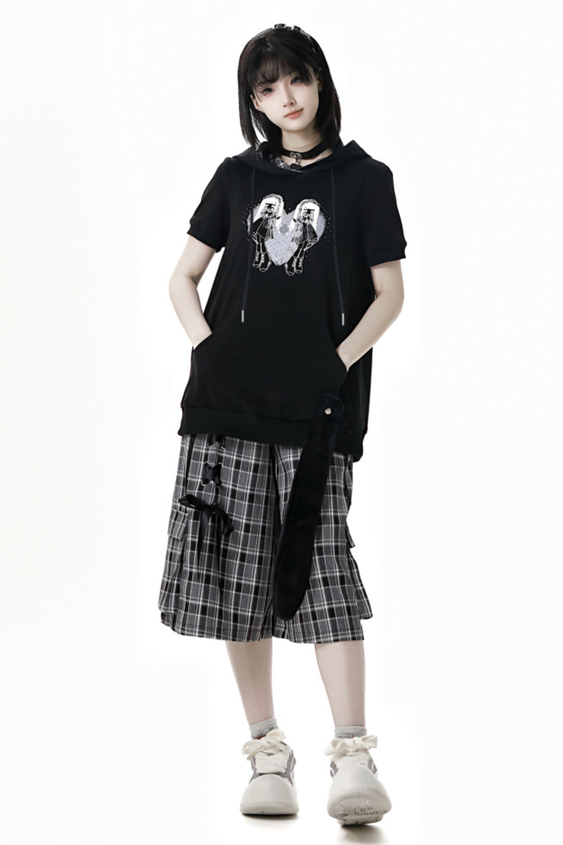❤チェックフード付きシャツ + フード付きトップス + ハーフパンツ❤