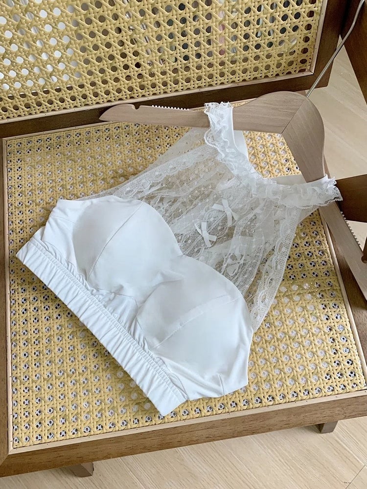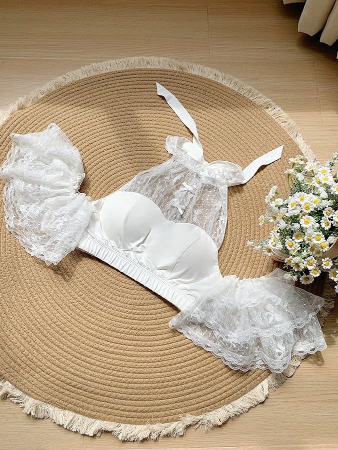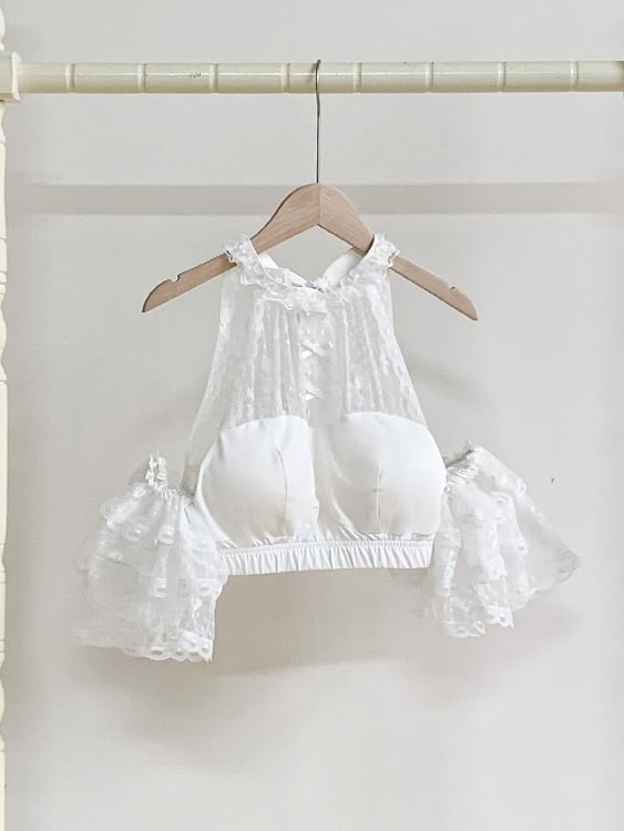 取り外し可能なレースのフリルスリーブが付いたホワイトのホルターネッククロップドトップス