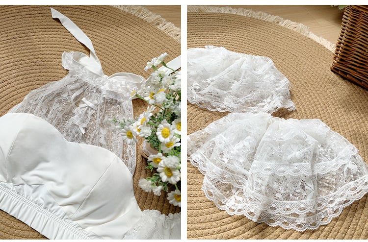ホルターネック、ホワイト、フラッタースリーブ、レース付き、クロップド丈トップス