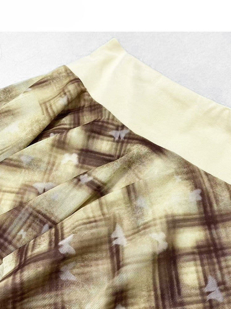イエローウェイストランドパンクグラマラスチェック柄バタフライプリントハンカチヘムスカート