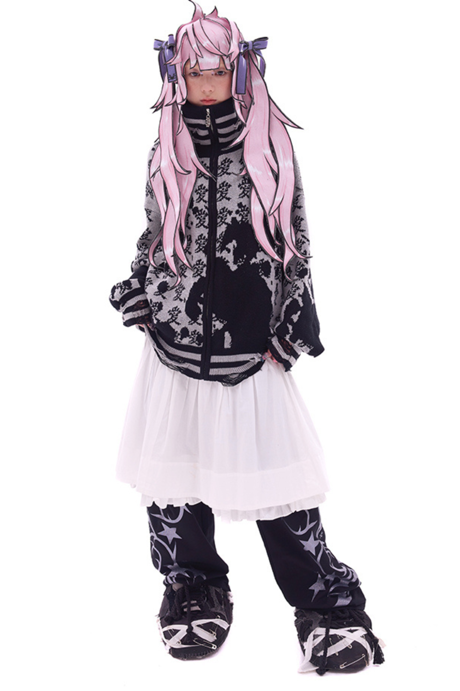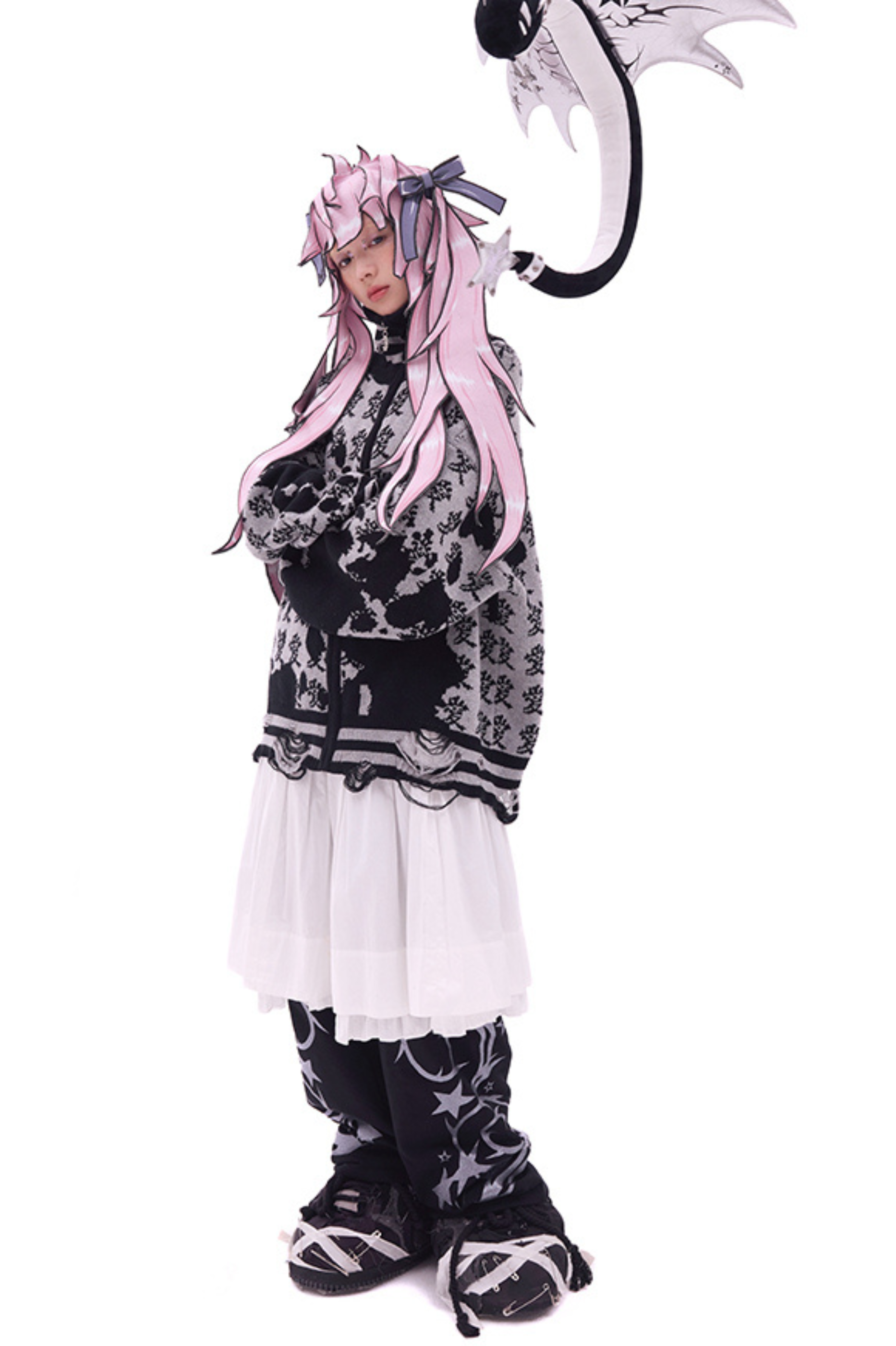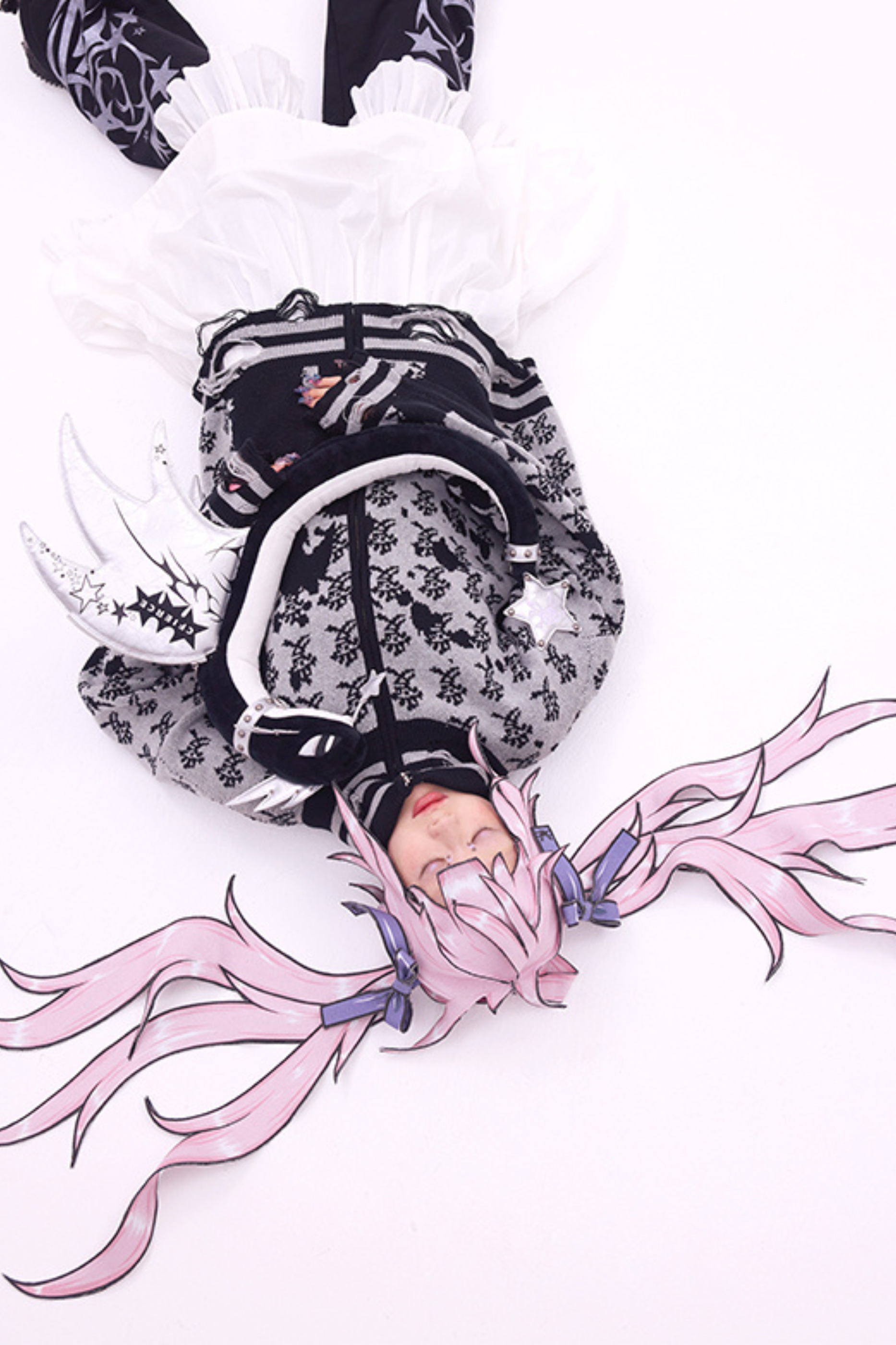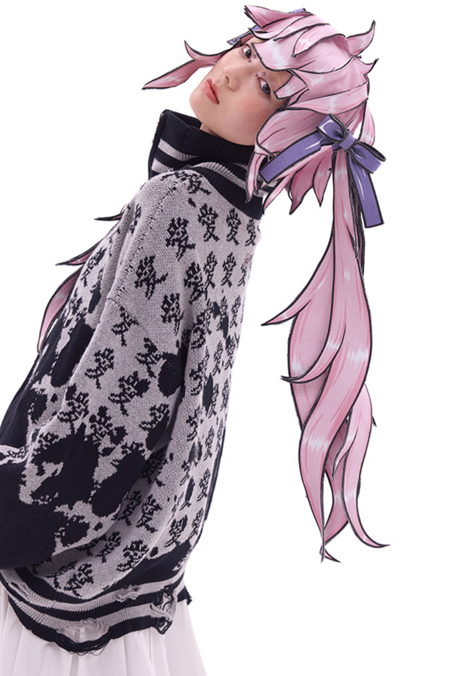 ホワイトとピンクのロリータボンネットチョーカー