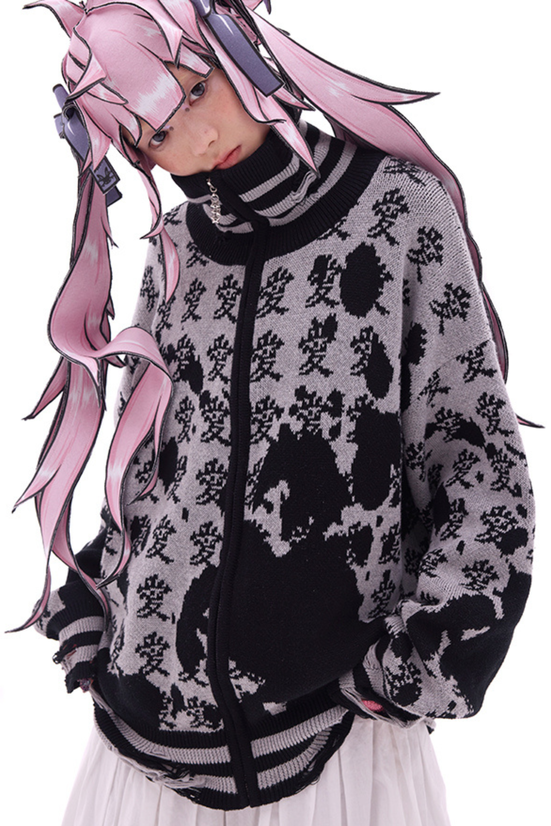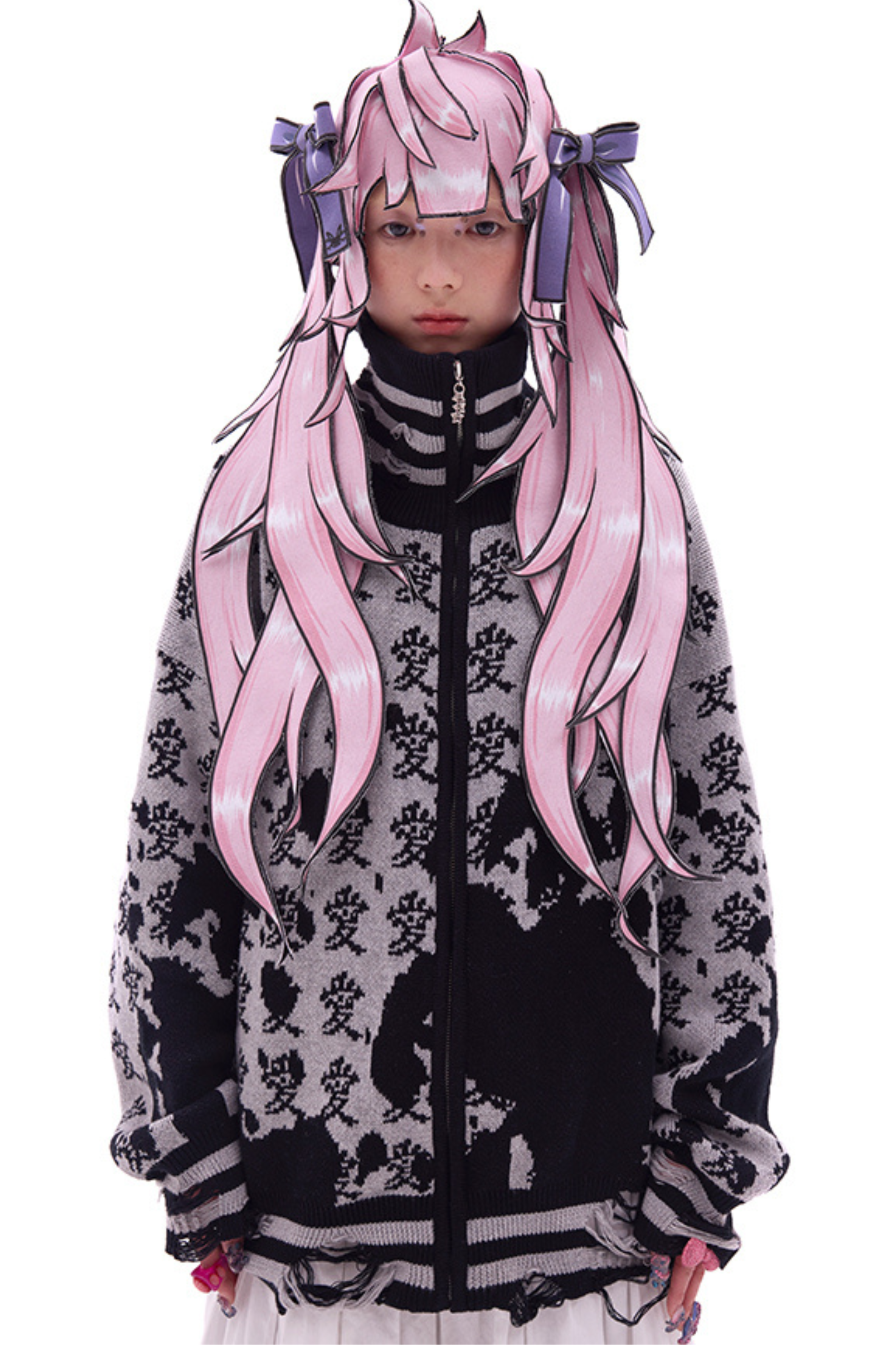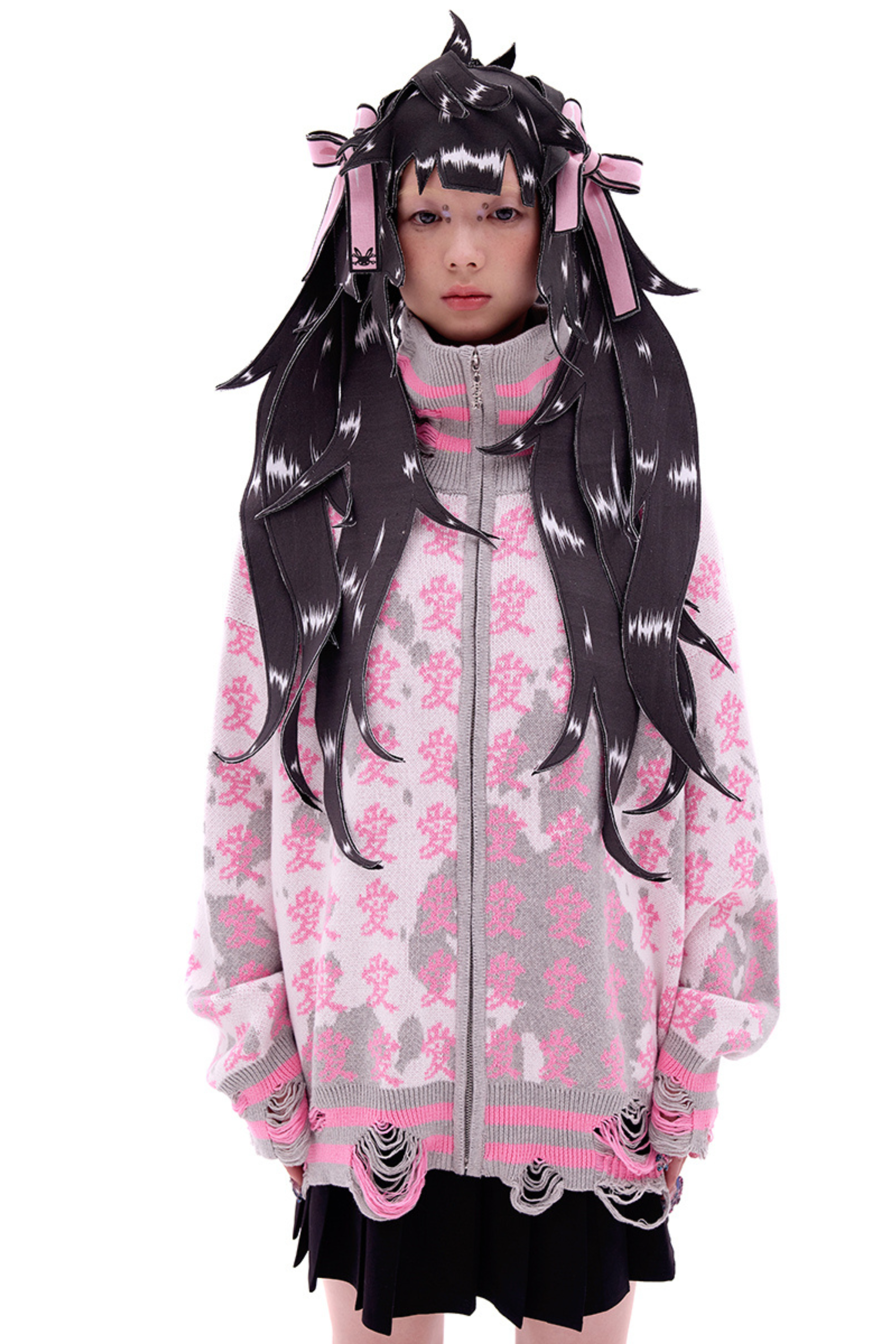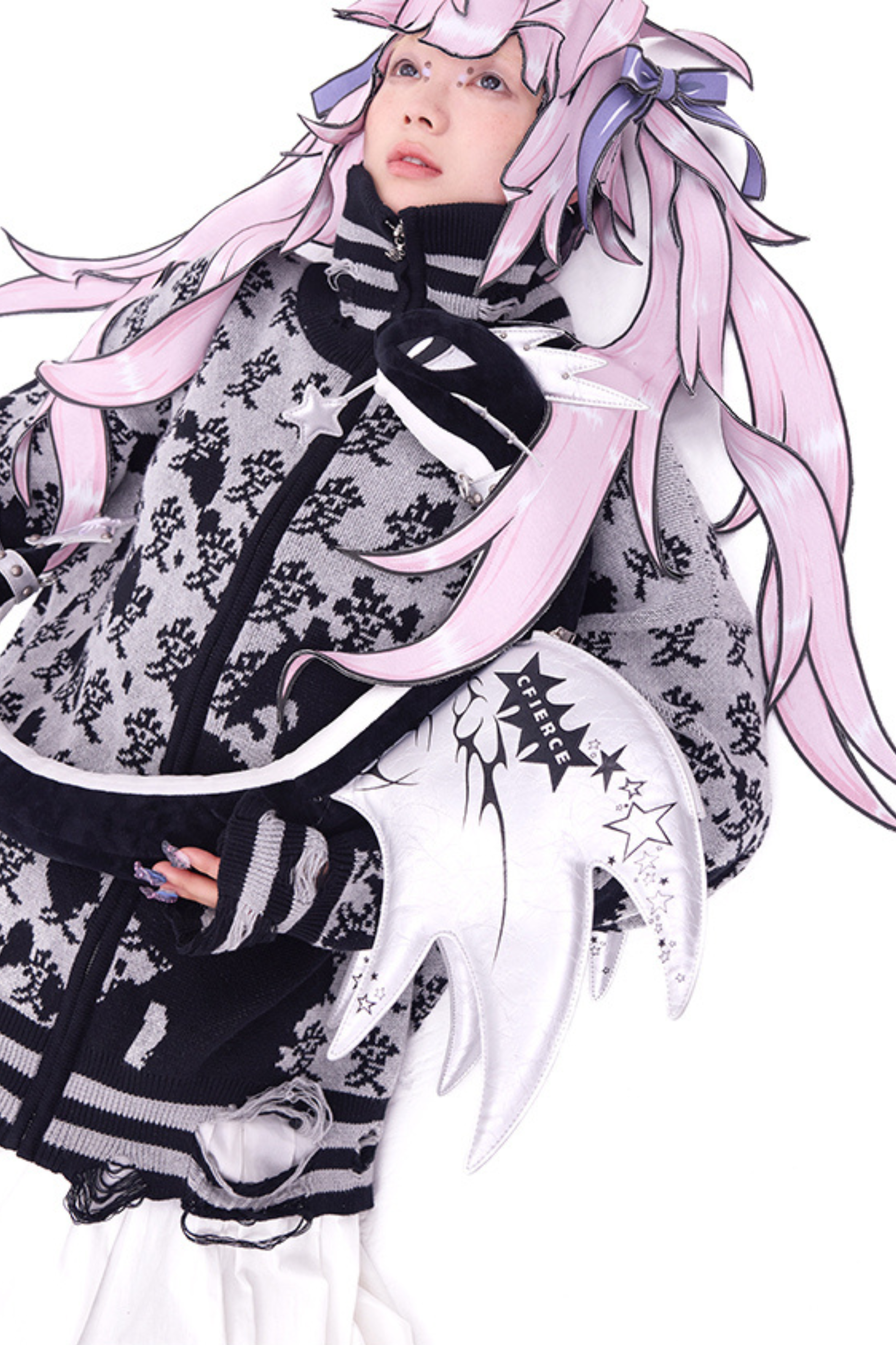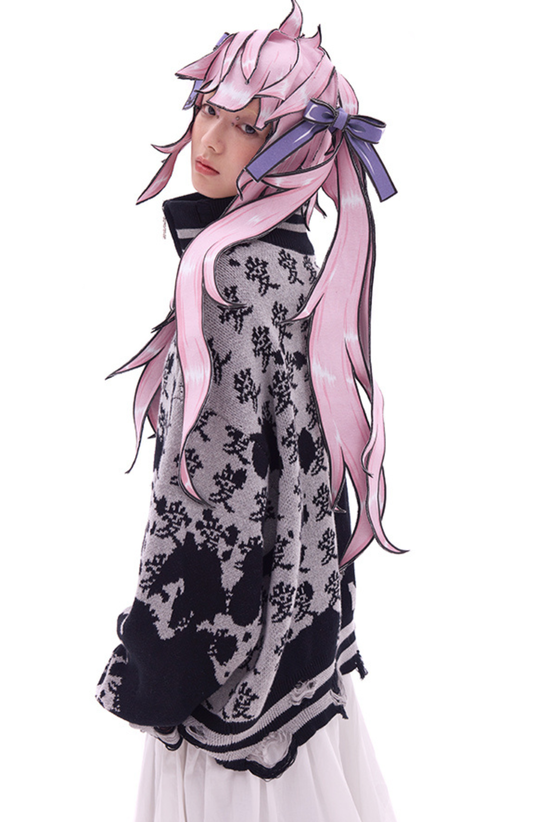 ホワイトとピンクのロリータボンネットチョーカー