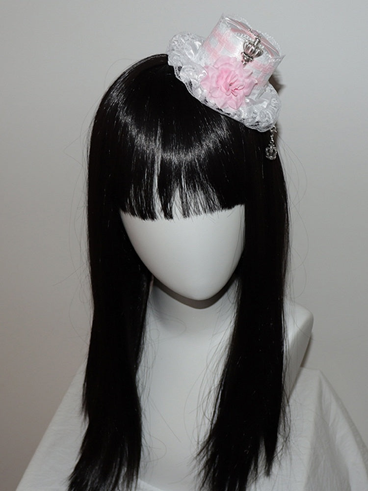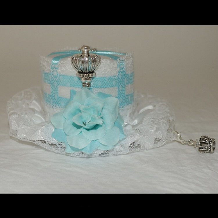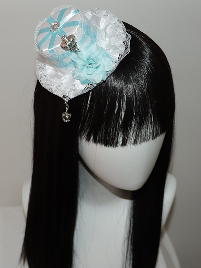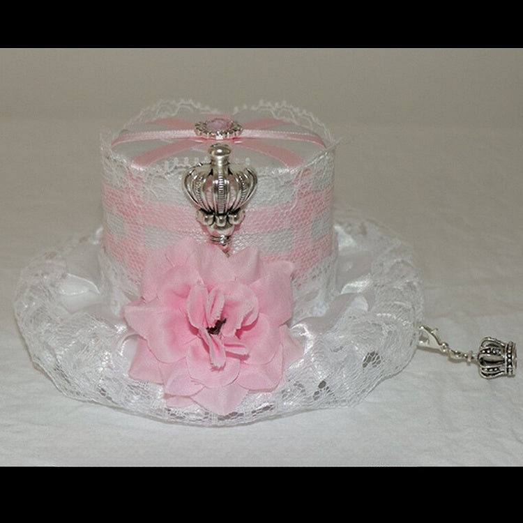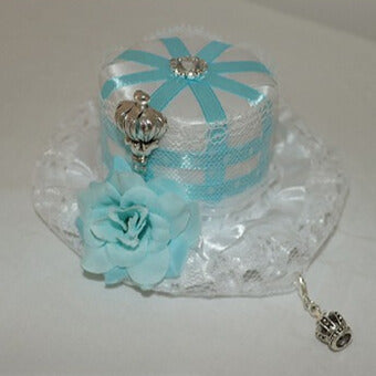 ブルー/ピンクの王冠飾り付き花柄レーストリムミニハット