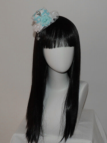 帽子のトリム、クラウンデザイン、レース、ブルー/ピンクの花柄、ミニ装飾
