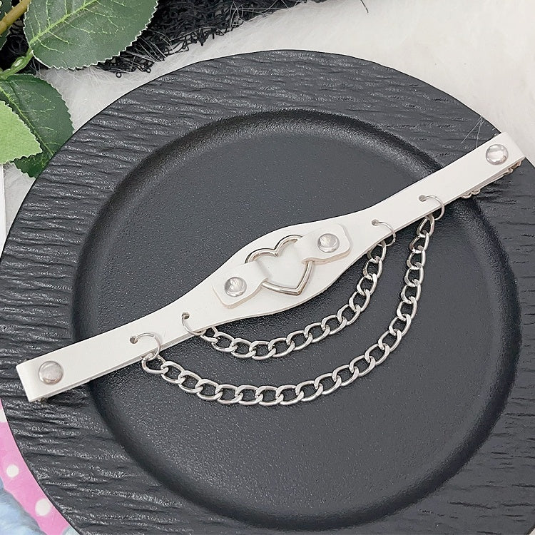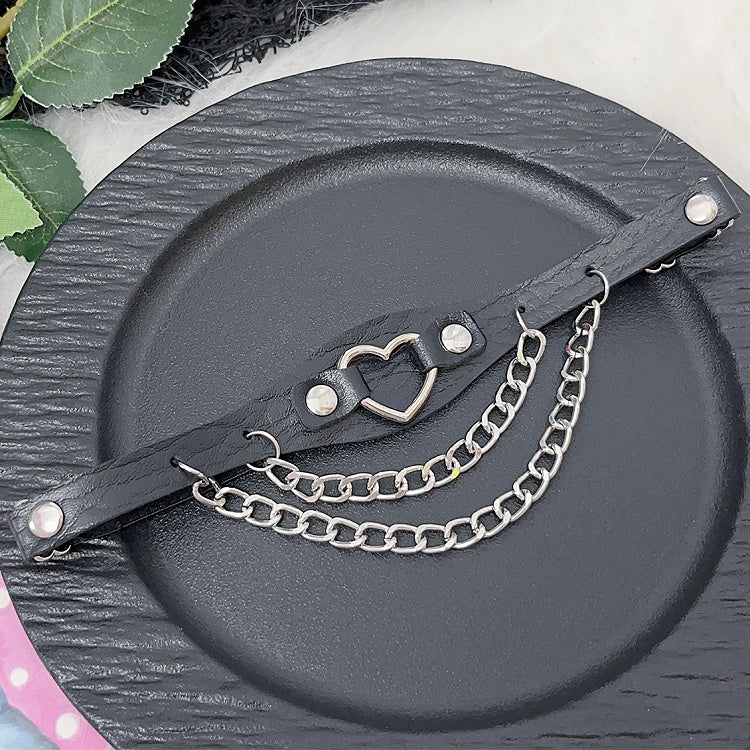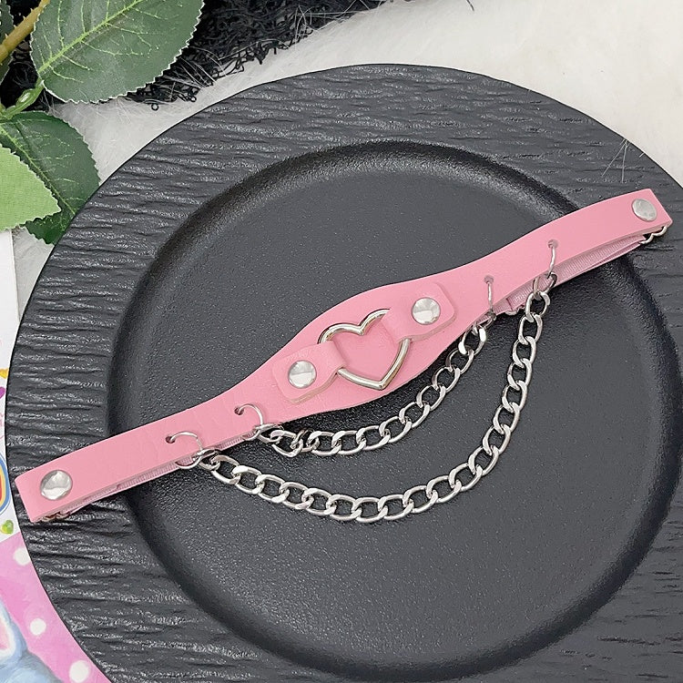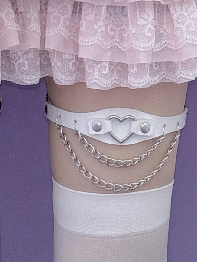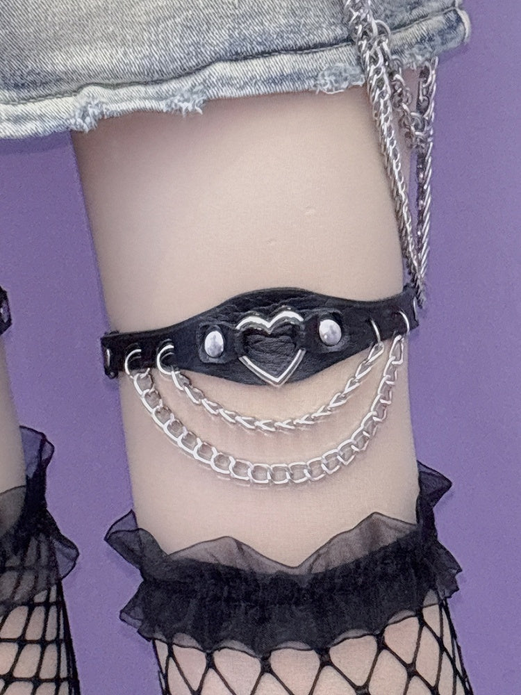 ハート装飾チェーン グラマラス PU ブラック/ピンク/ホワイト レッグチャーム ループスタッド Y2K