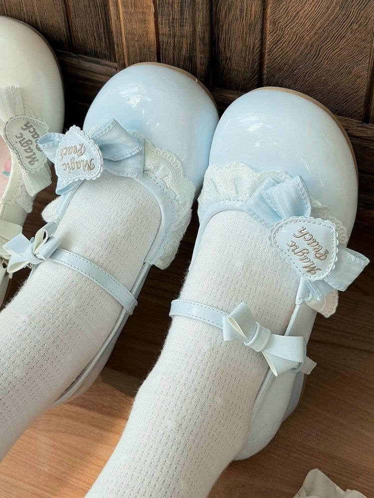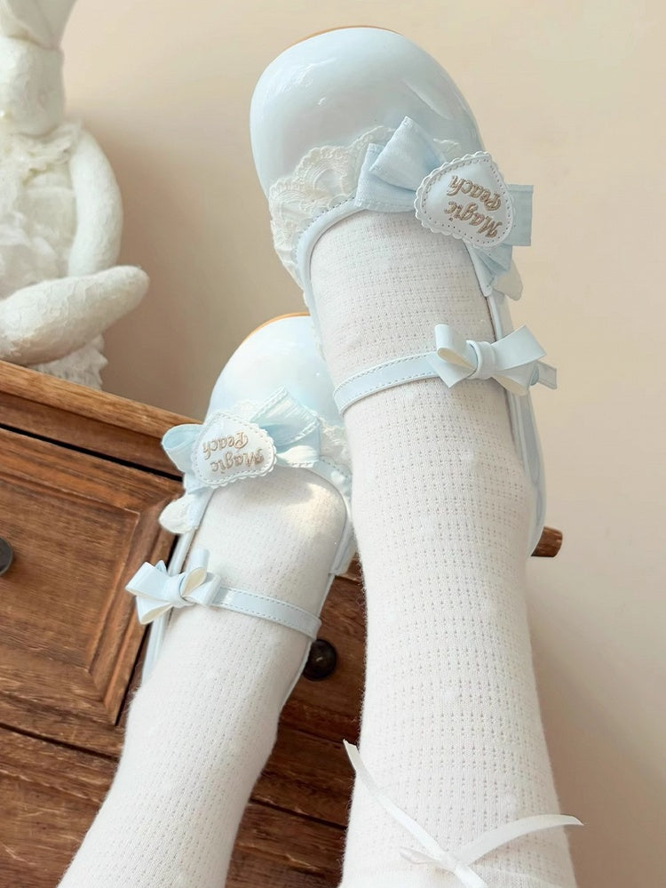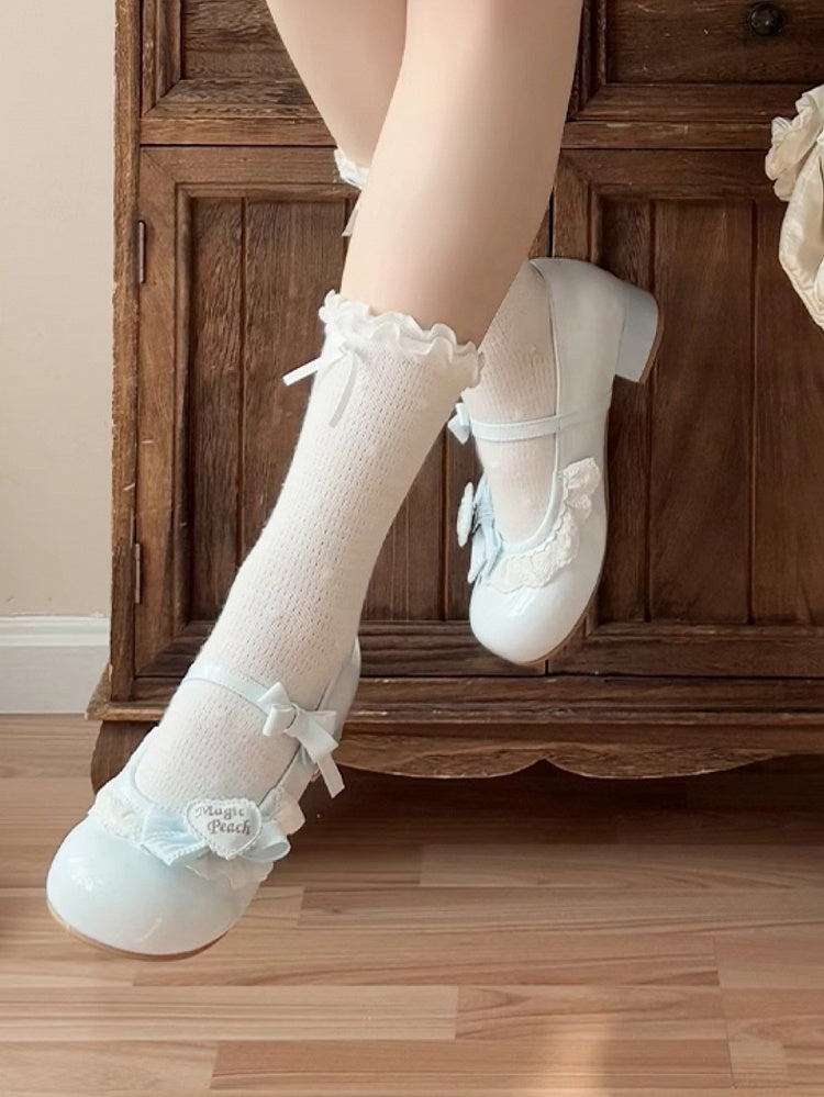 Heart Details, Lace Trim & Bow Accents PU Low-heel Mary Jane Shoes in Sweet Lolita