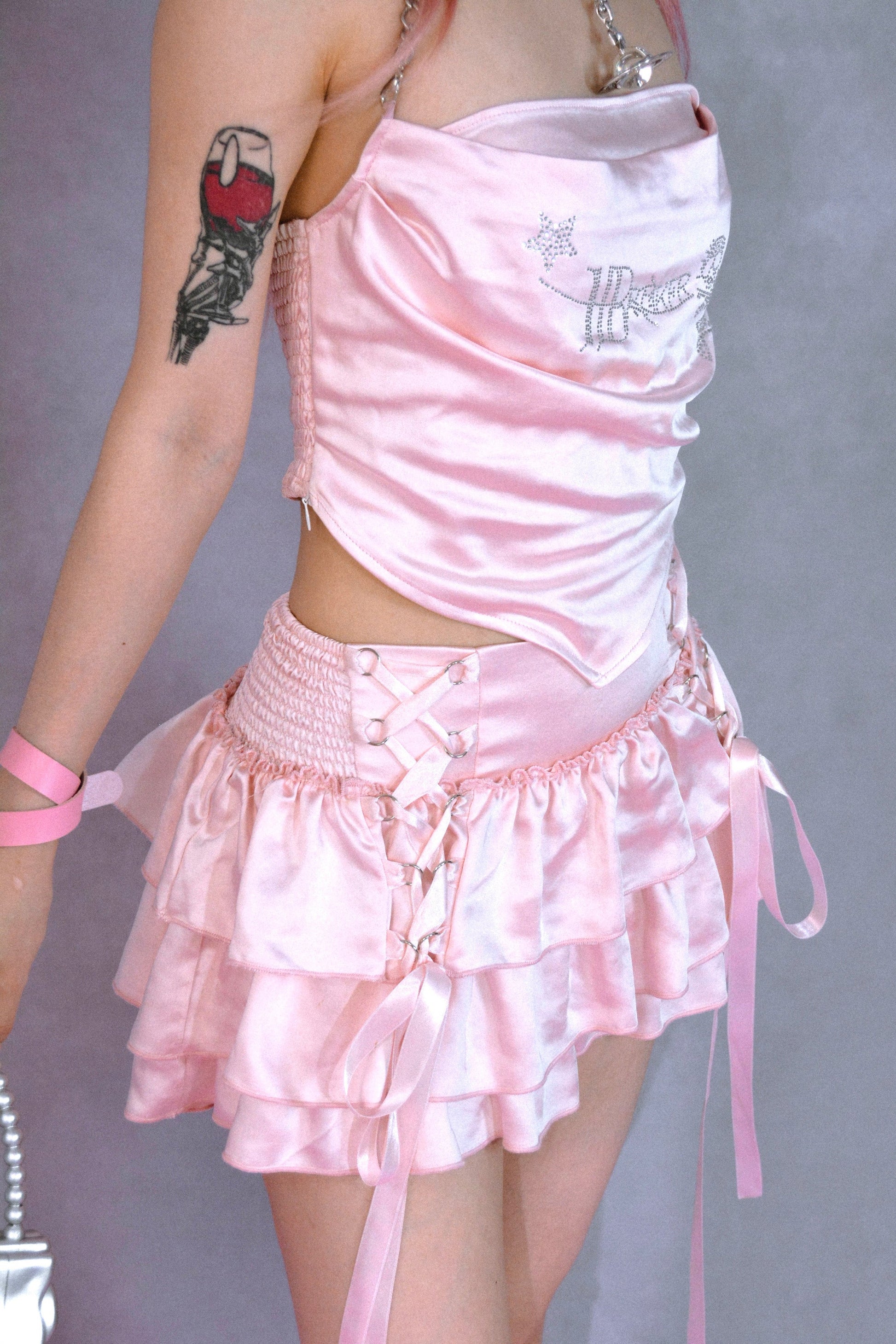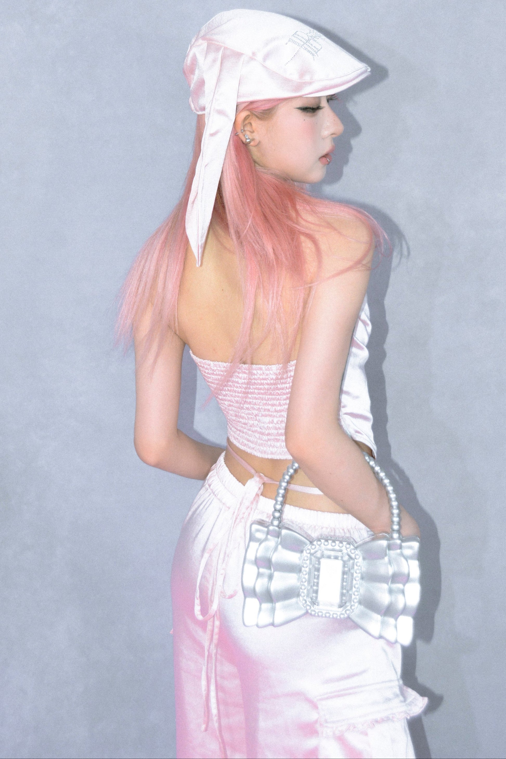 ピンクと白のオールドスクールロリータファッションドレス、蝶結びディテール、ロリータJSKセット