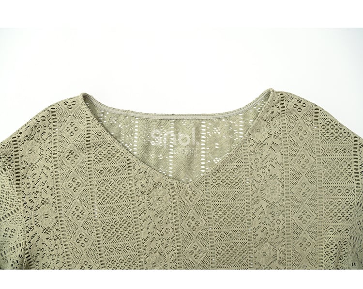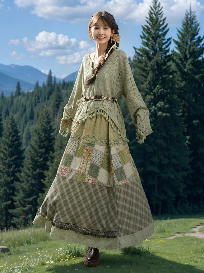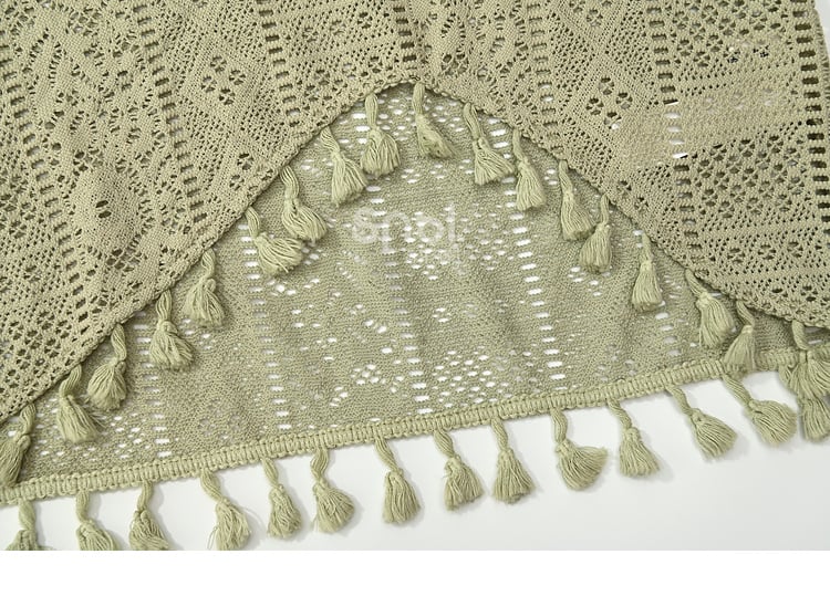 ボヘミアングリーンVネックタッセルヘムトップス(ベルト付き)