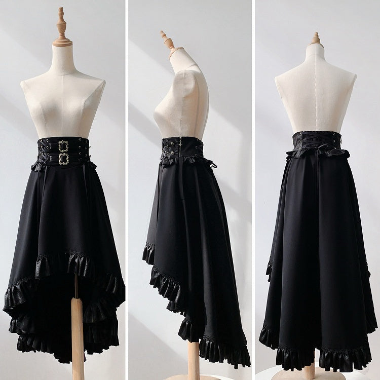 ハイローハイカスケーディングスカートフリルロリータゴシックウエストブラック