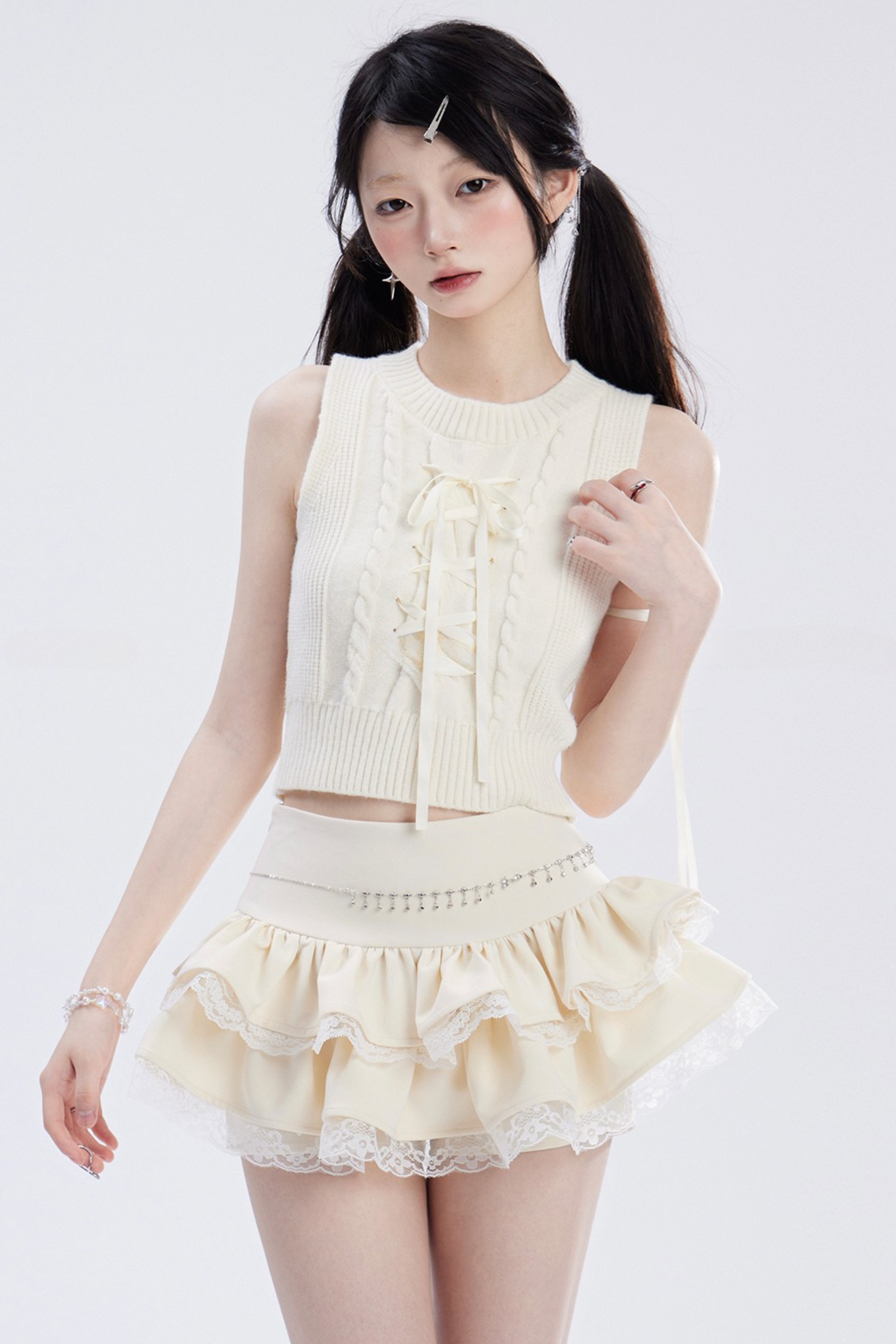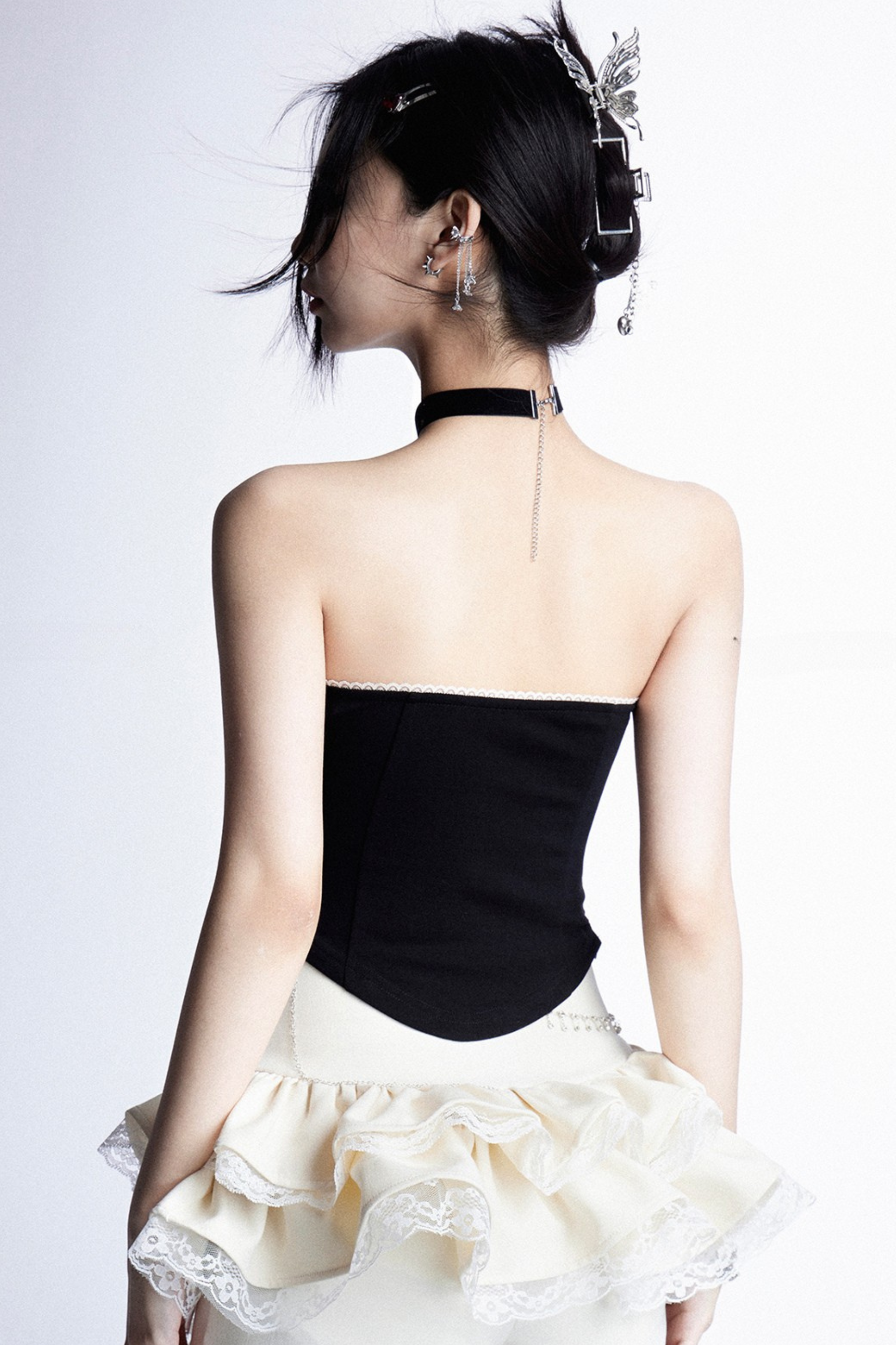 ❤スイートクールスパイスハイウエストミニスカート + クロスチューブトップ + フード付きパーカー❤