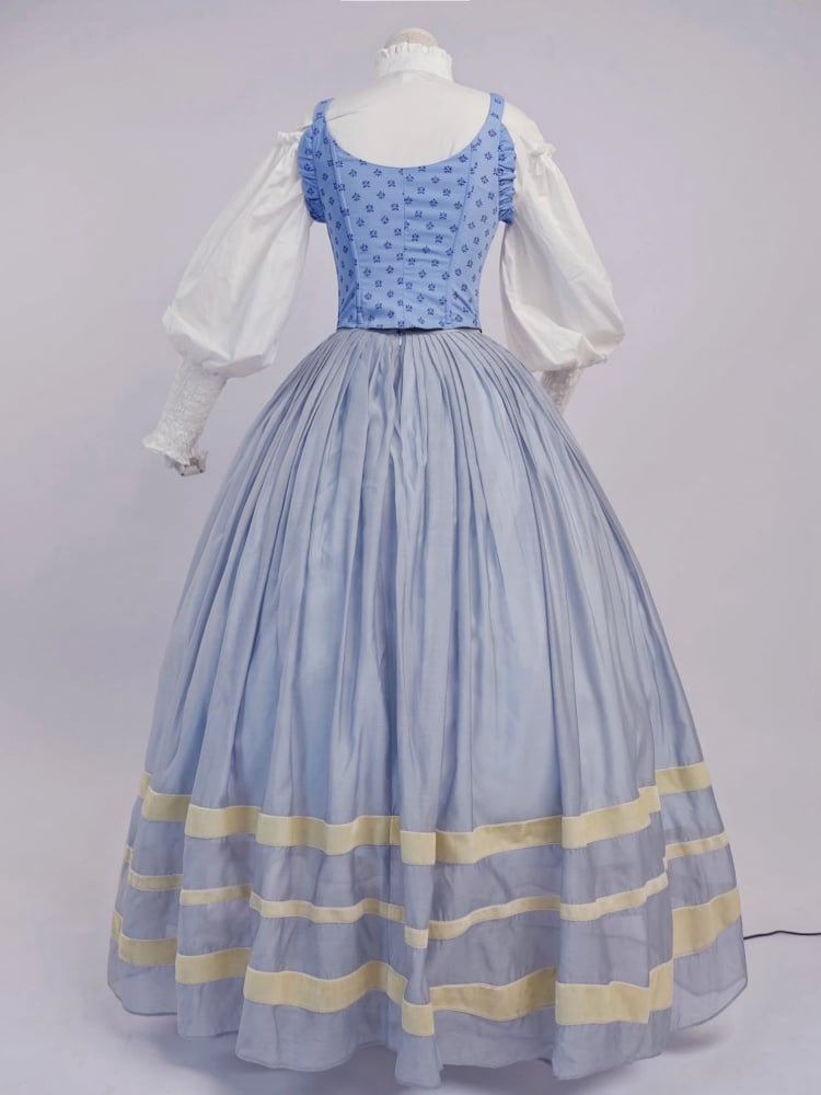 青と白のオールドスクールロリータファッションドレス 蝶結びディテール JSK セット