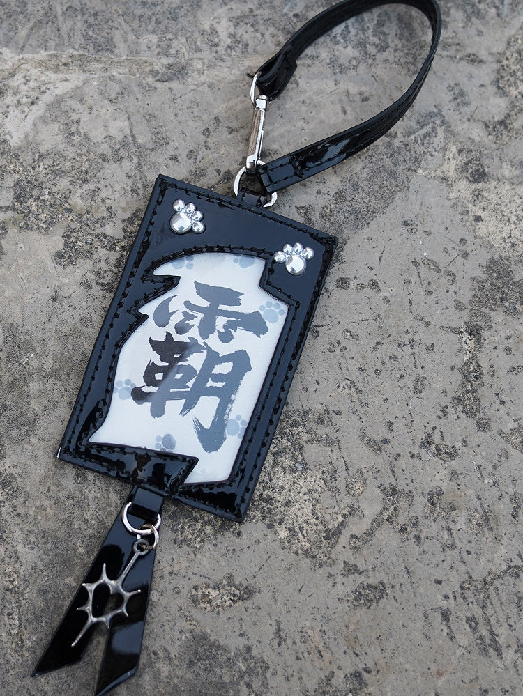 愛らしい猫の足跡デザインのブラックPUバッジカードホルダー