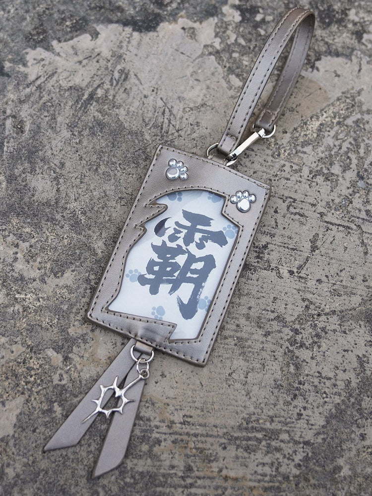 愛らしい猫の足跡デザインのグレーPUバッジカードホルダー