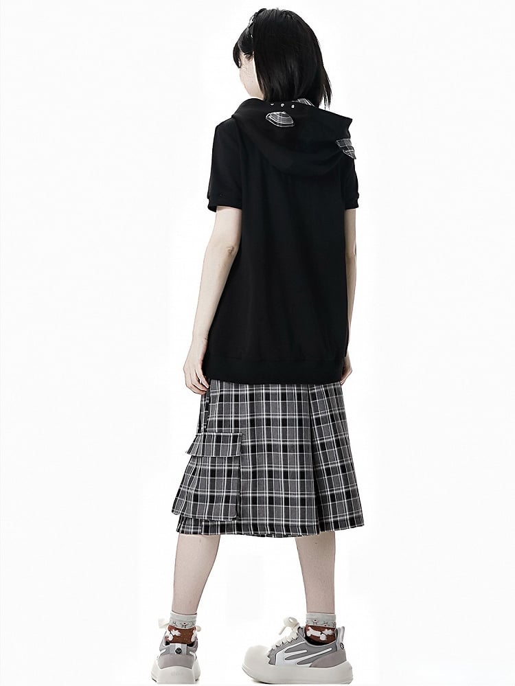 黒猫の耳デザインフードグラフィックTシャツ